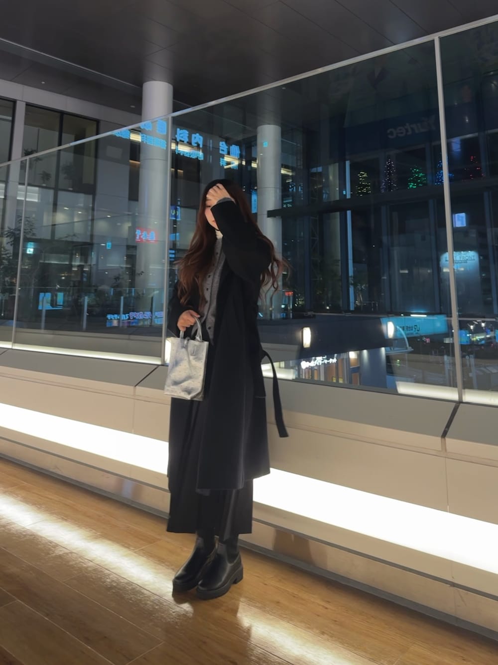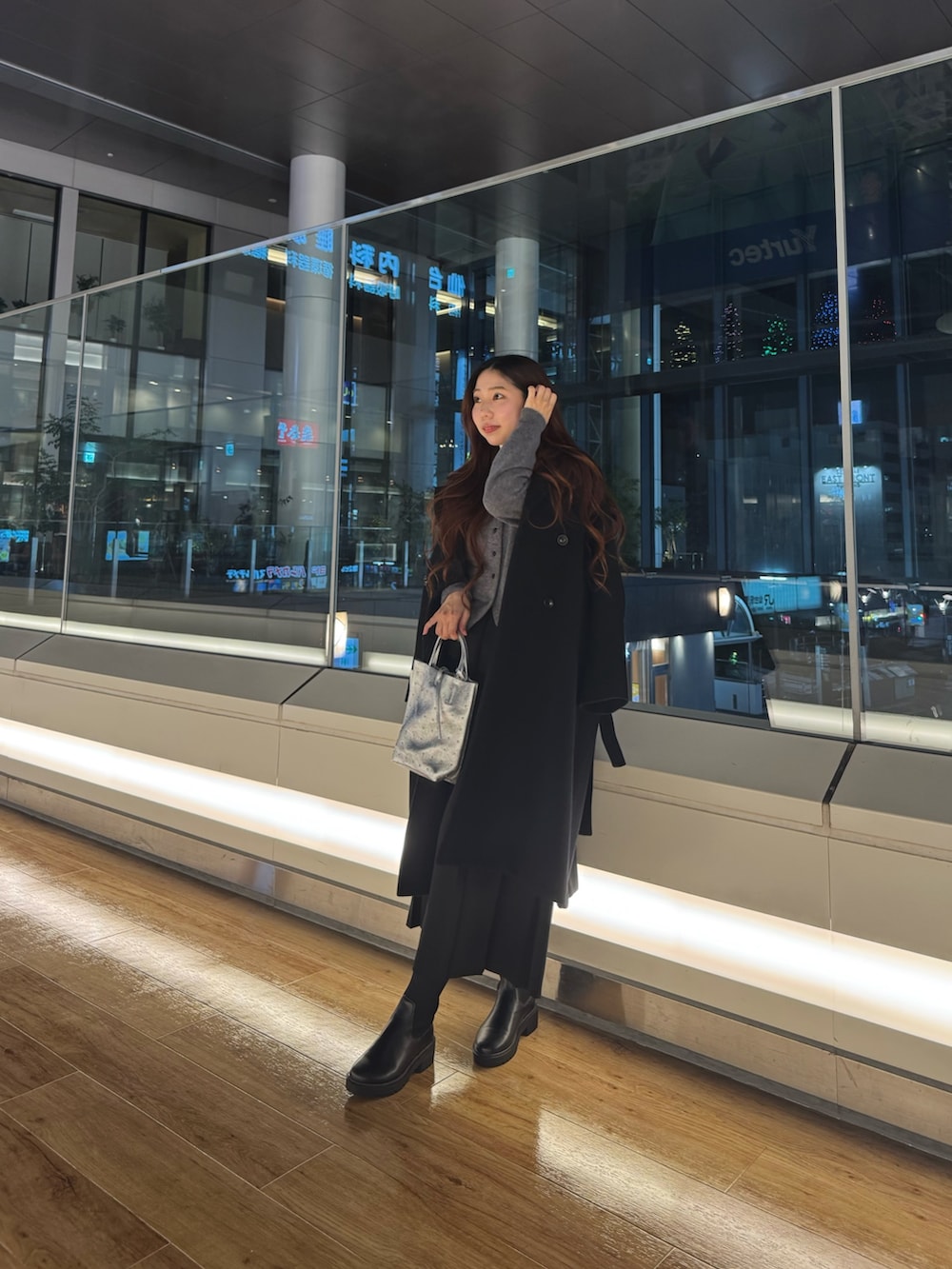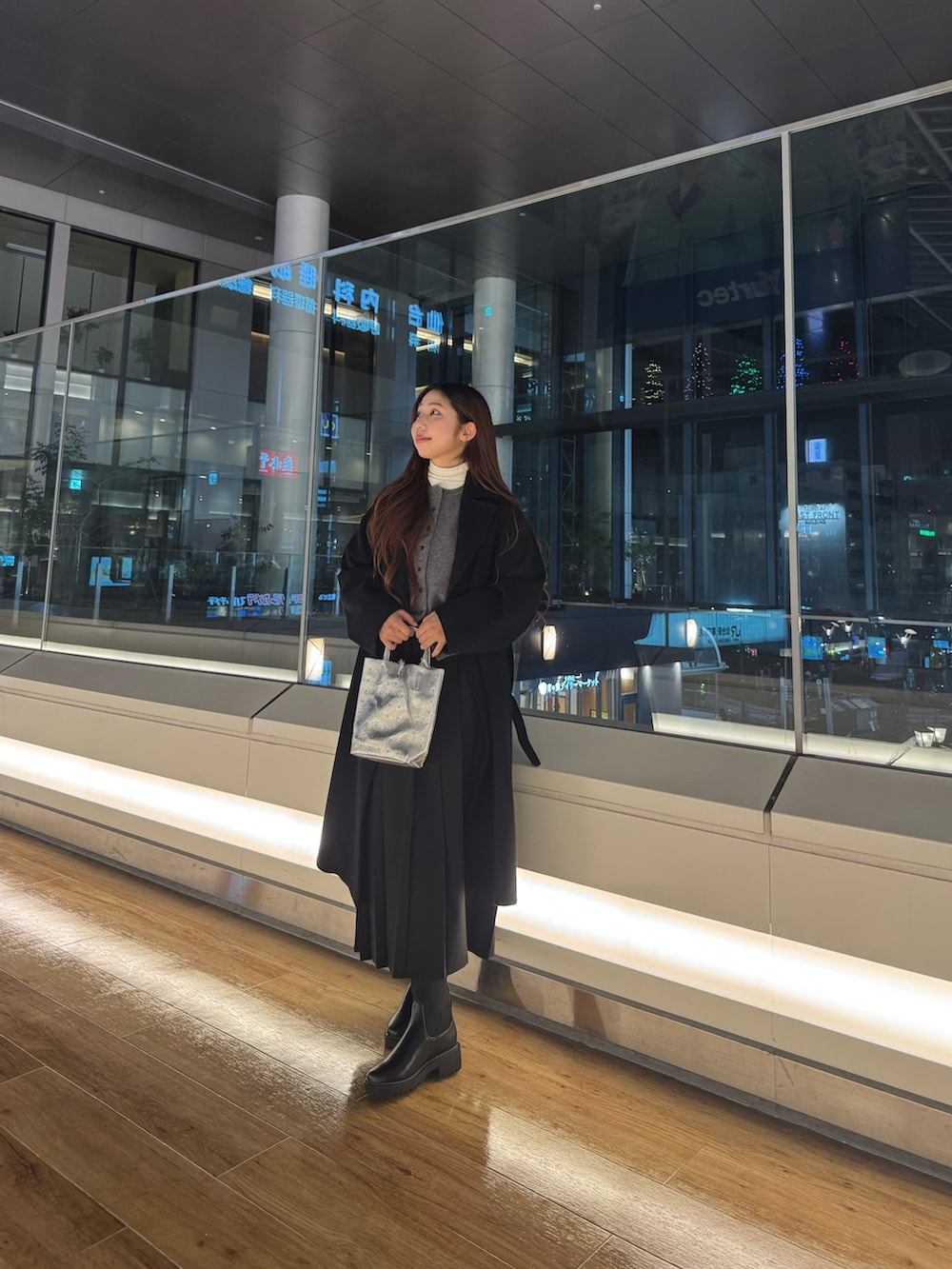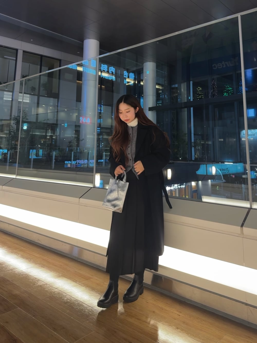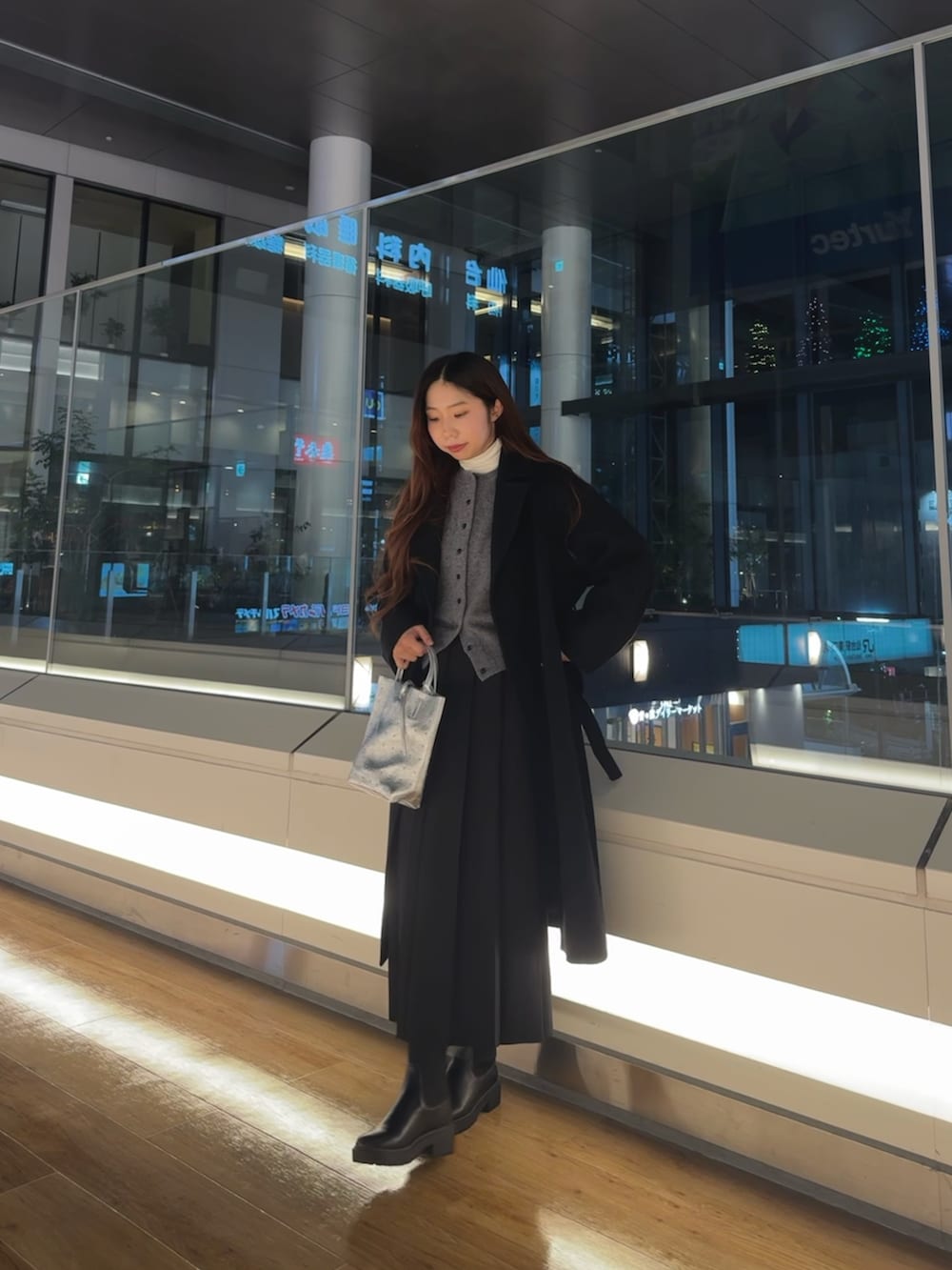 ウールニットシリーズのカーディガンに、ハイネックをレイヤードしたおでかけ冬服コーデ🤍