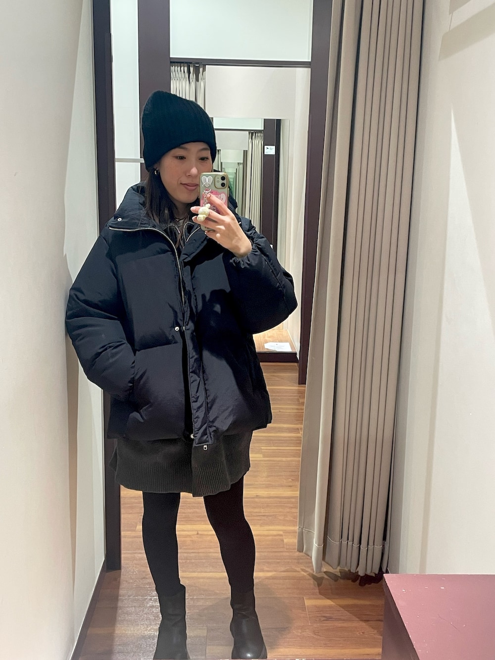 しっかりとダウンが詰まっているので保温性も高く、スタンドカラーなので首元まで暖かですよ‼︎