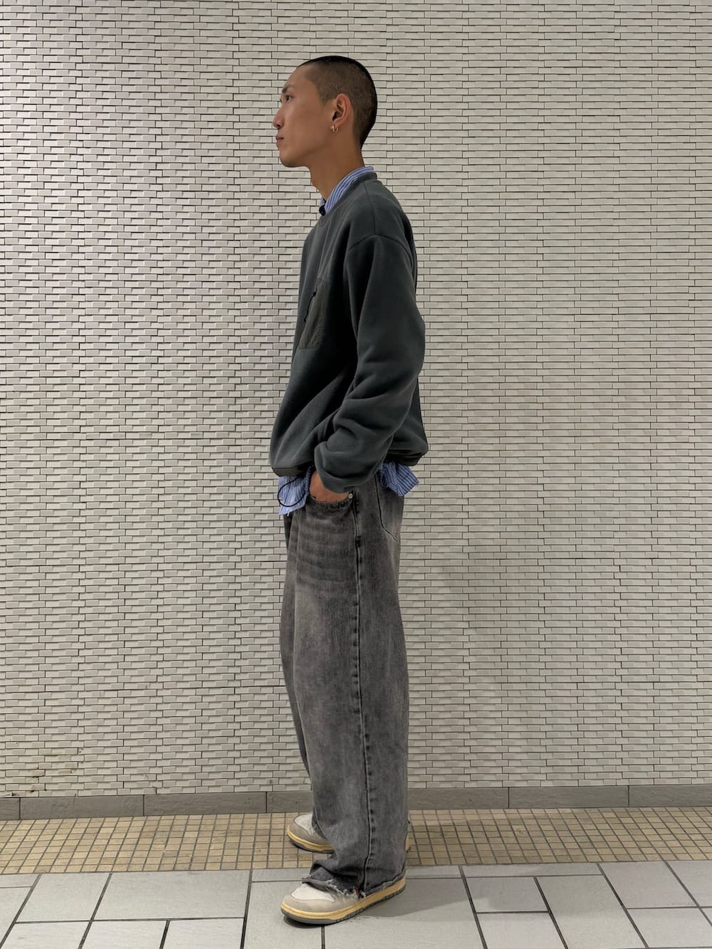 〇フリース暖かくて着たいけどカジュアル見えしすぎるのが嫌って方も多いと思います!シャツを1枚挟んであげるだけで一気に着用しやすくなります!革靴やスラックスなどのキレイめアイテムを合わせるのも◎
