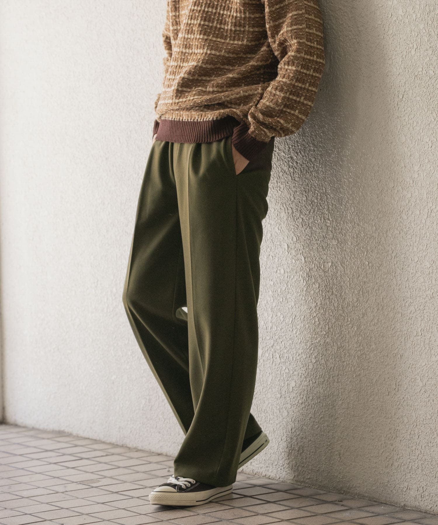 カジュアルな印象が強いスラックスなので、