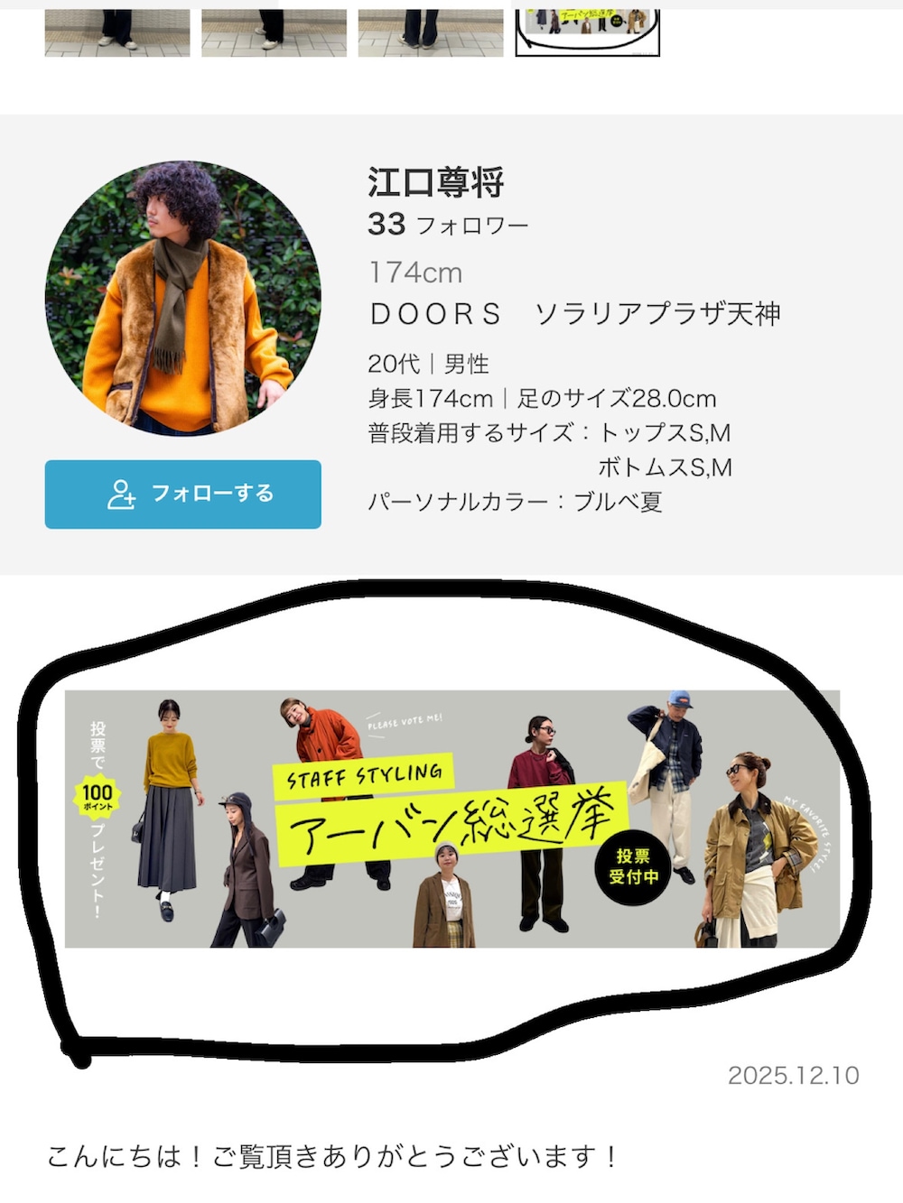 アーバン総選挙ファイナリストまで選ばれています!皆様ぜひ応援の一票をよろしくお願いいたします!アーバンリサーチのアプリから30秒程で投票可能です!