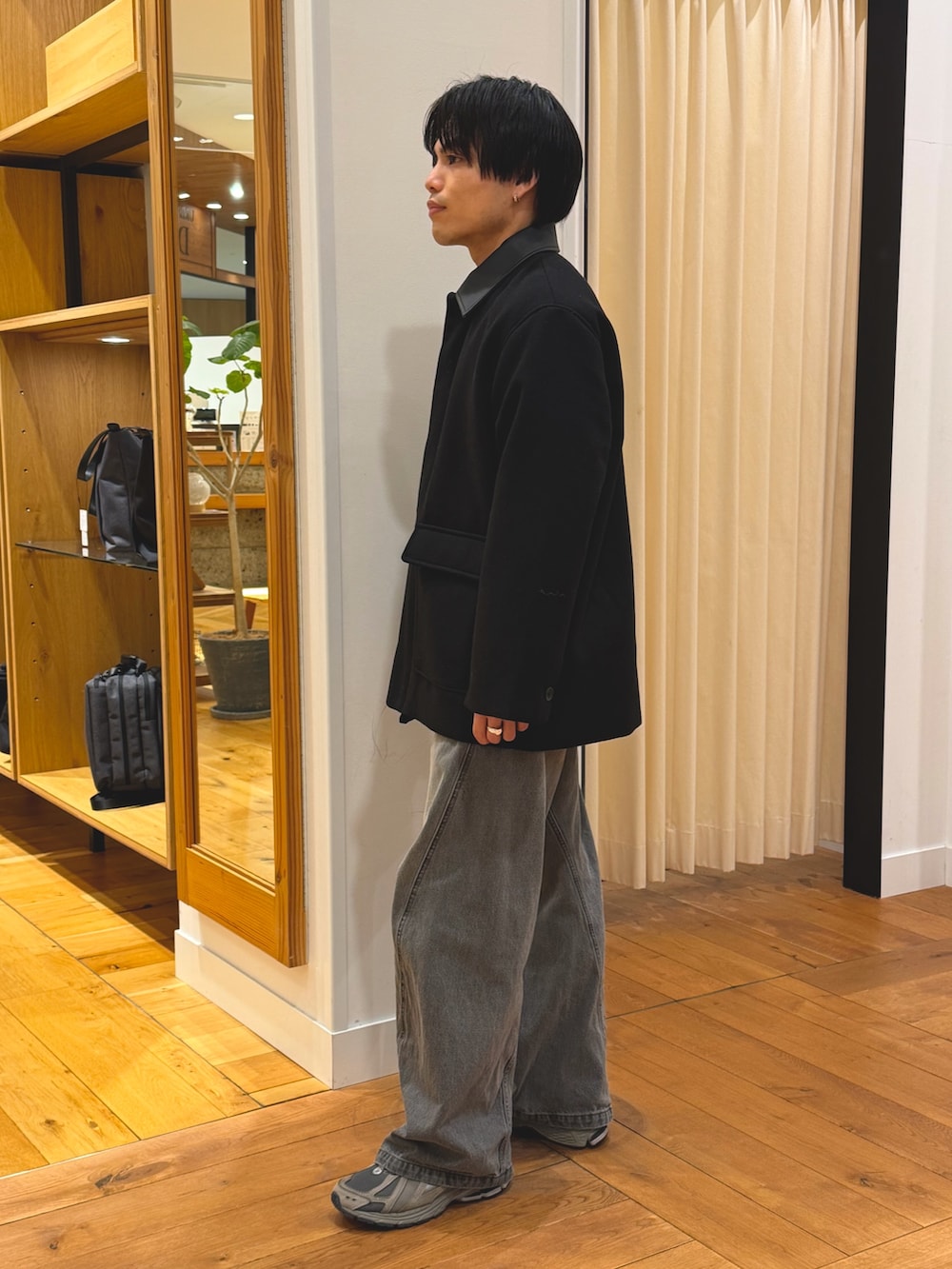サイズ感はオーバーで、中に着込めて、雰囲気も出ます!