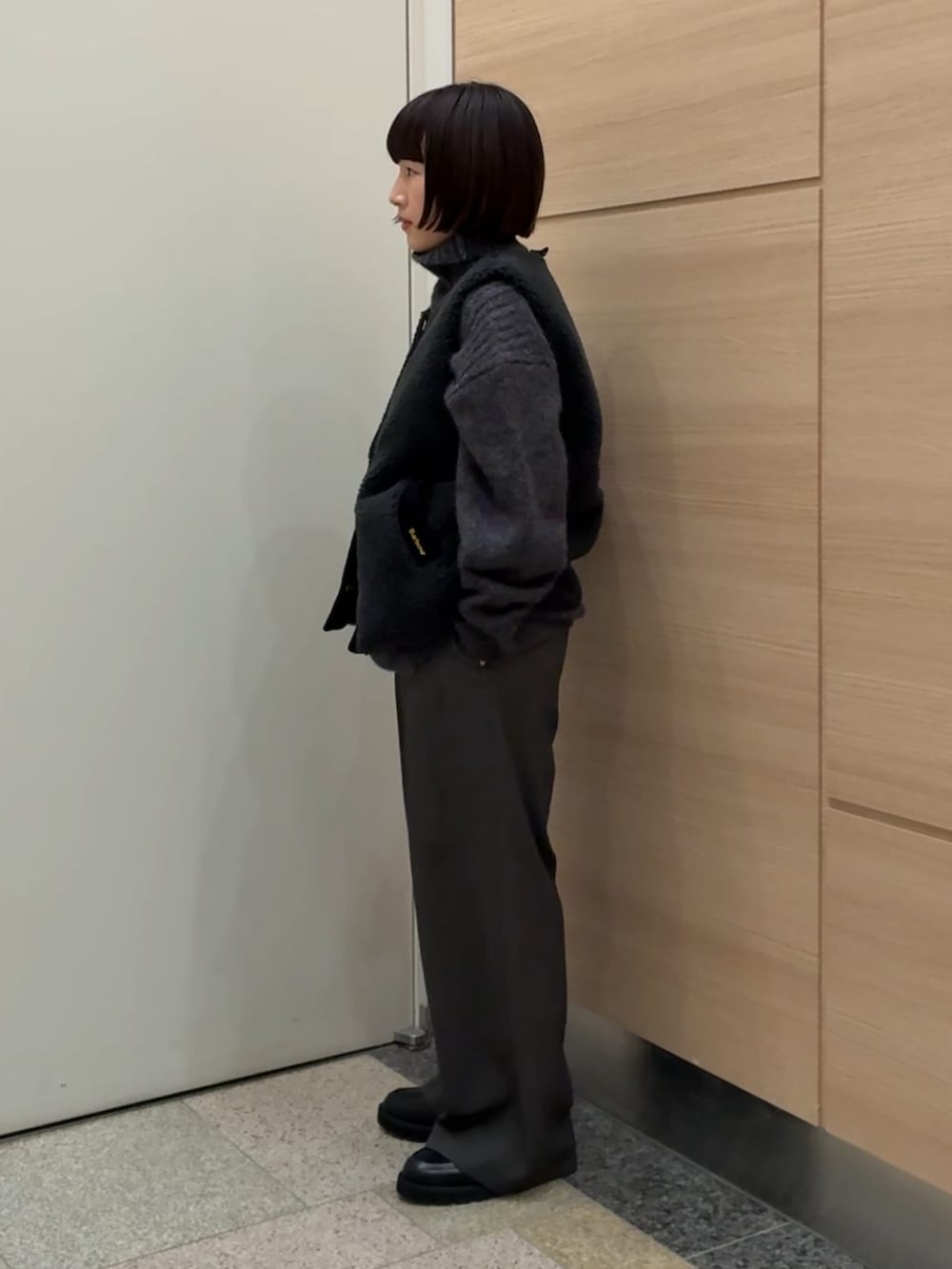下にタートルネックのニットもしっかり着込めるくらいゆったりしたサイズ感です