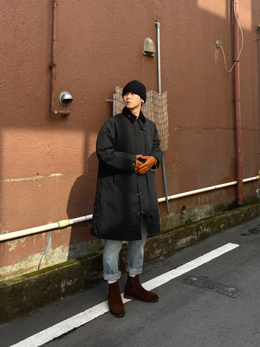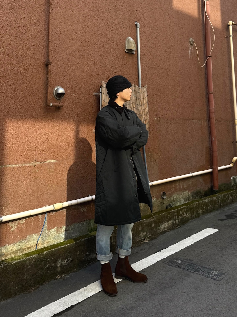 僕のとても気に入ってるKIJIMATAKAYUKIのビーニーと共に着てみました。