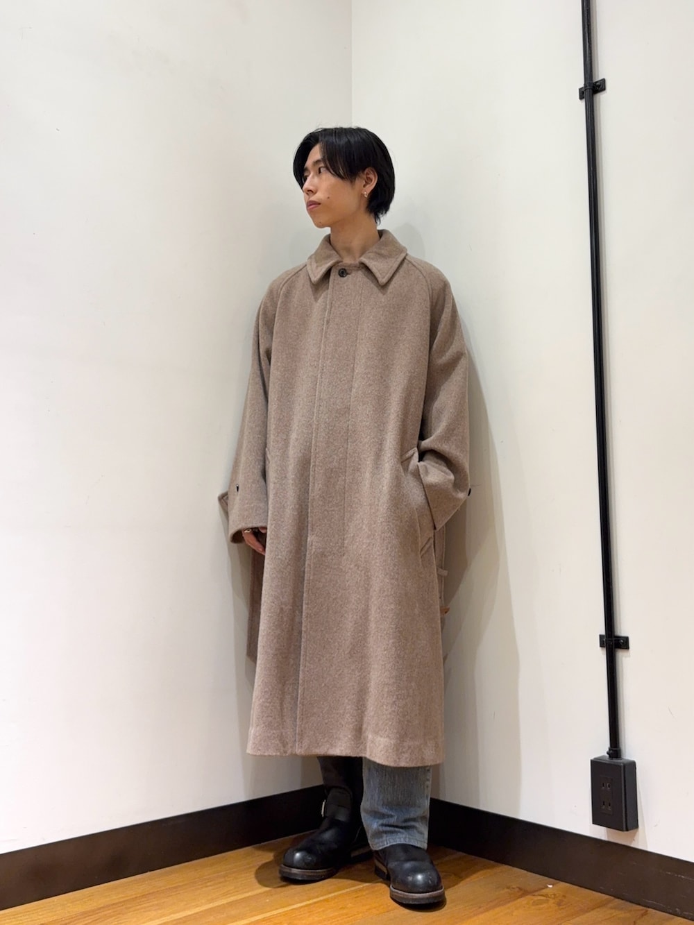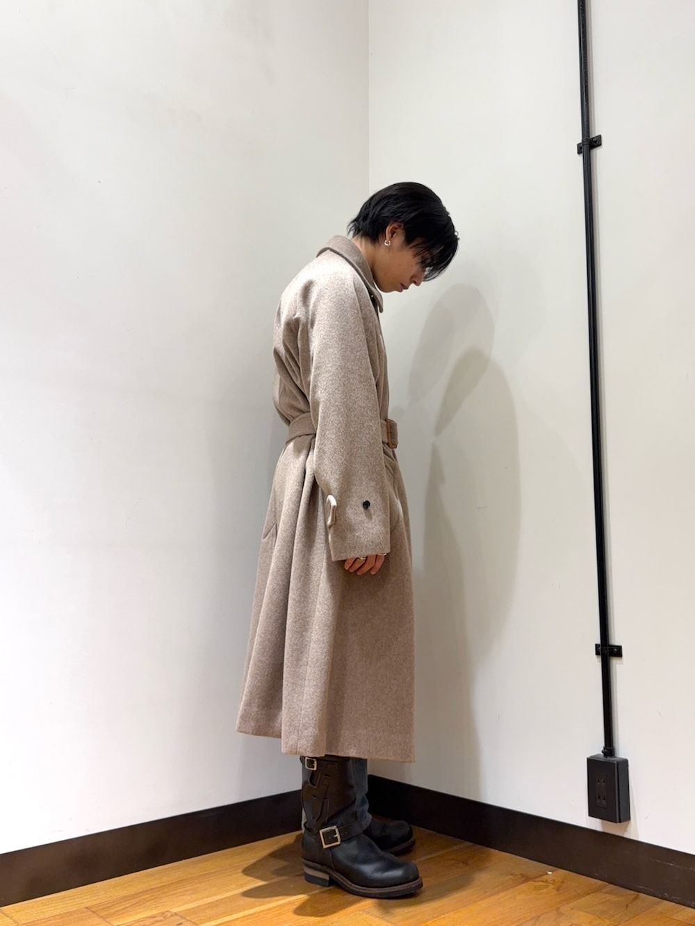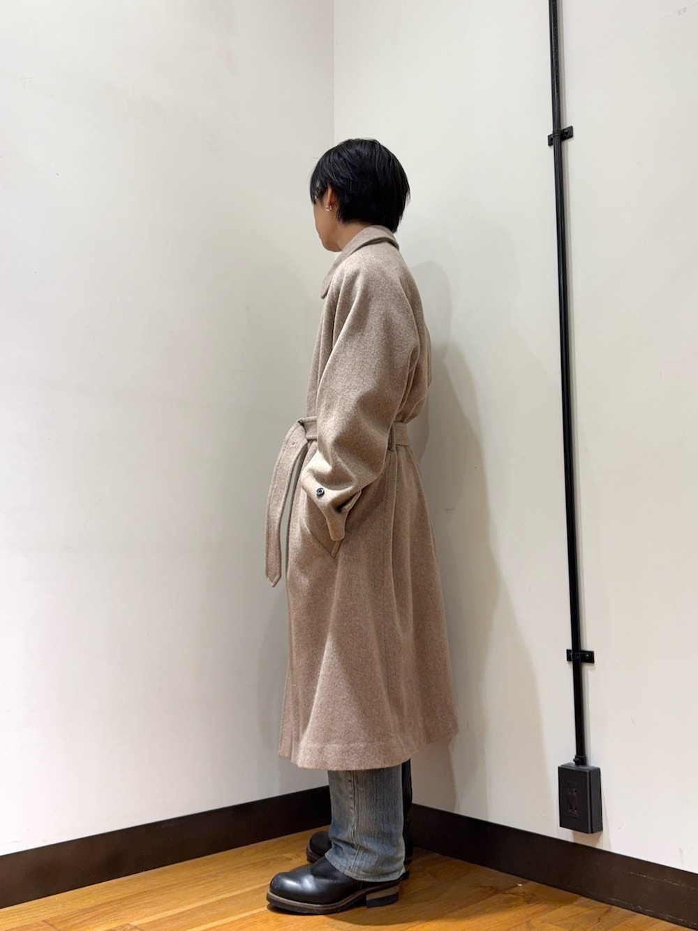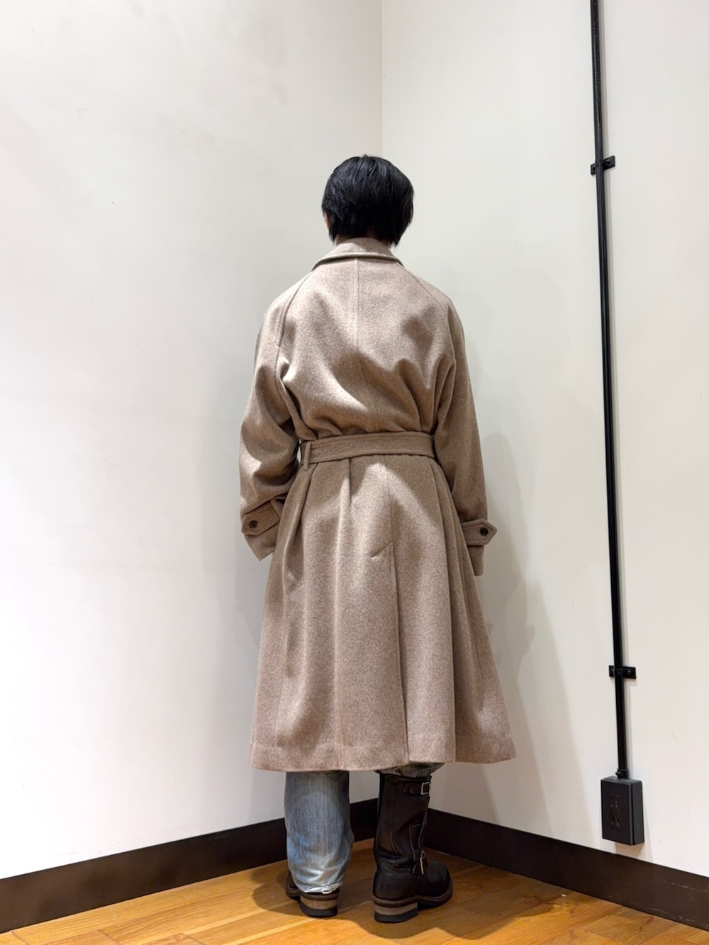 ベルトを締めても垂らしてもイケすぎてるシルエットと、上質なSuper100'sウールを100%使用し、丁寧にビーバー仕上げを施した、贅沢なベルテッドコートです。軽くてさらに暖かい最高の1着です。