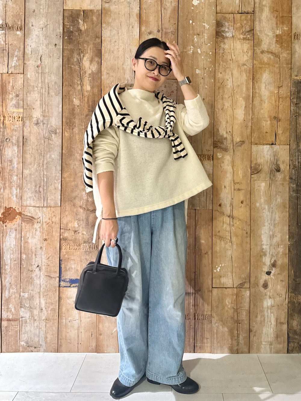 冬の白✖️淡デニムがかわいい🤍