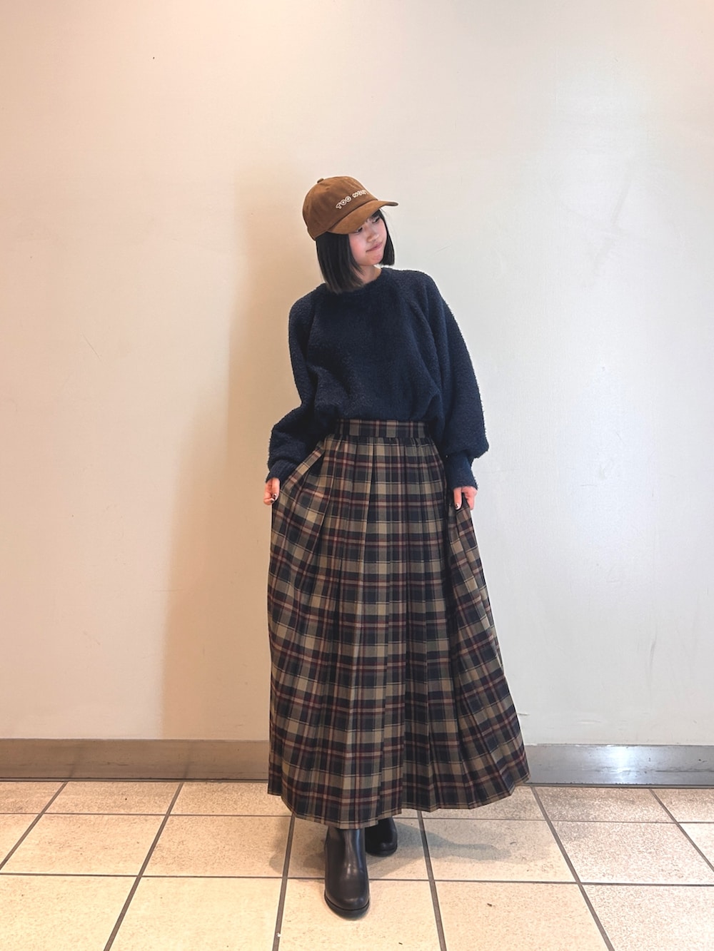 もこもこのシャギーニットに、動きやすいプリーツスカートをあわせました!
