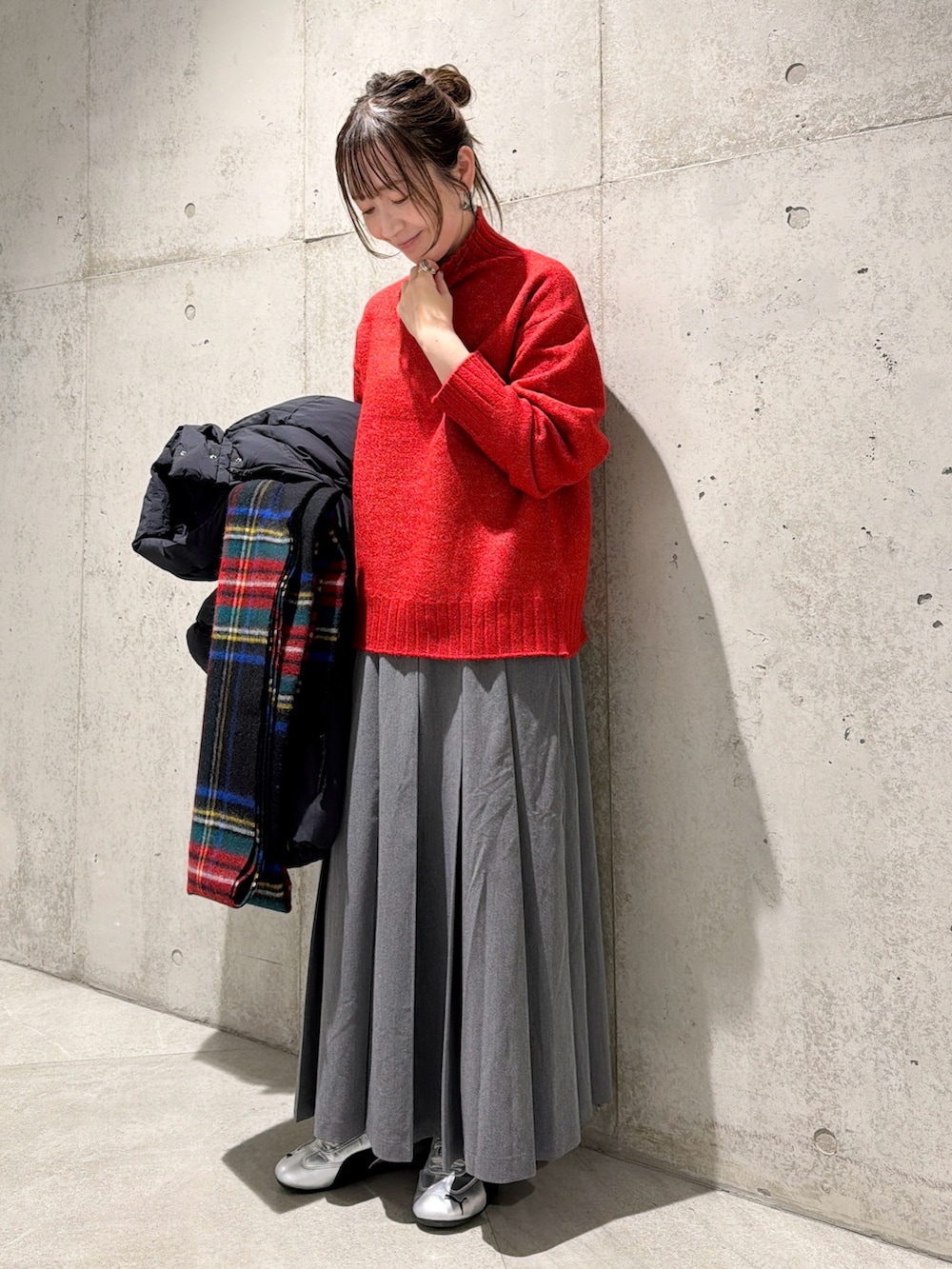 今回は、赤のニットをアクセントにした、大人カジュアルコーディネートです。