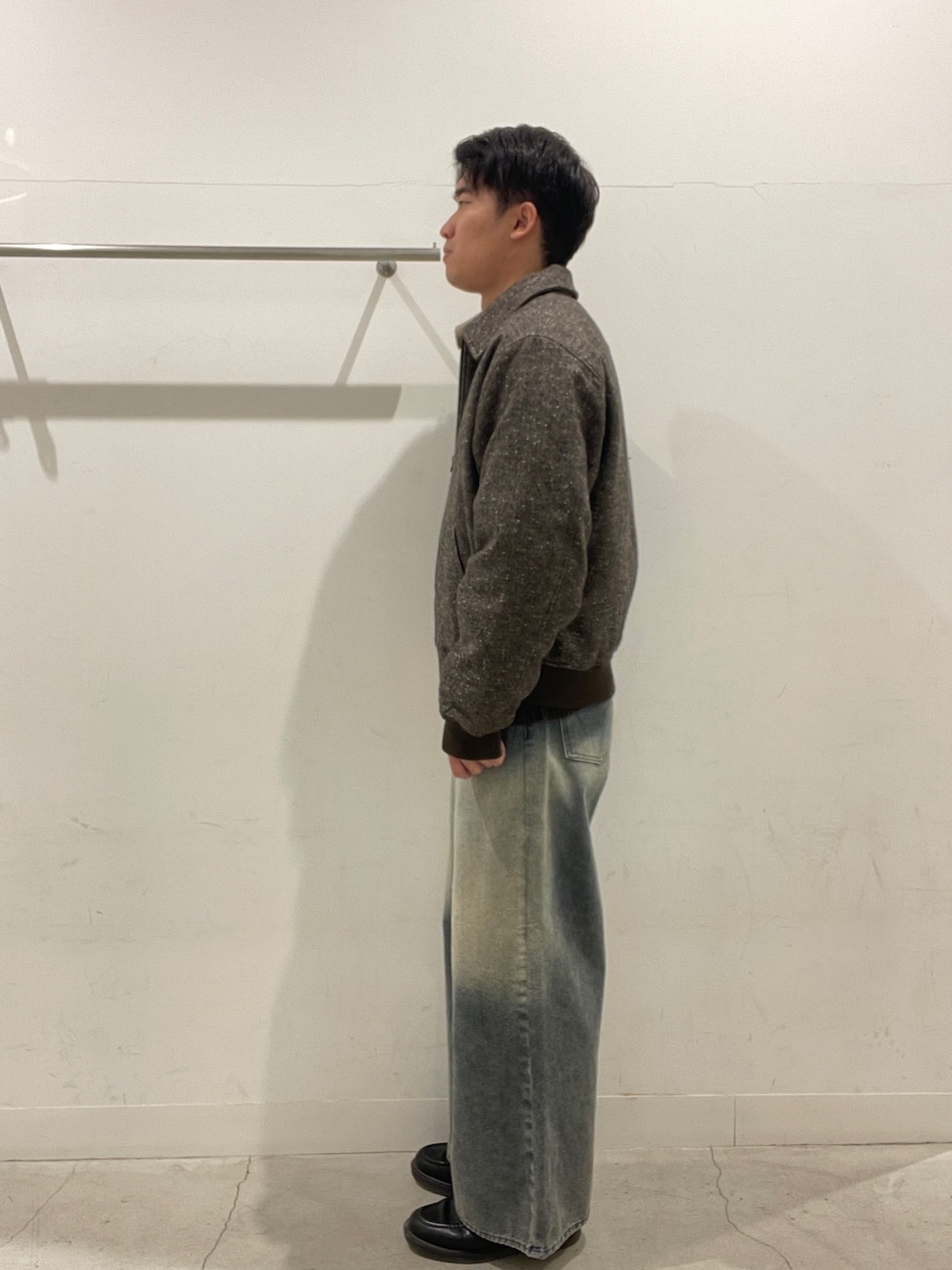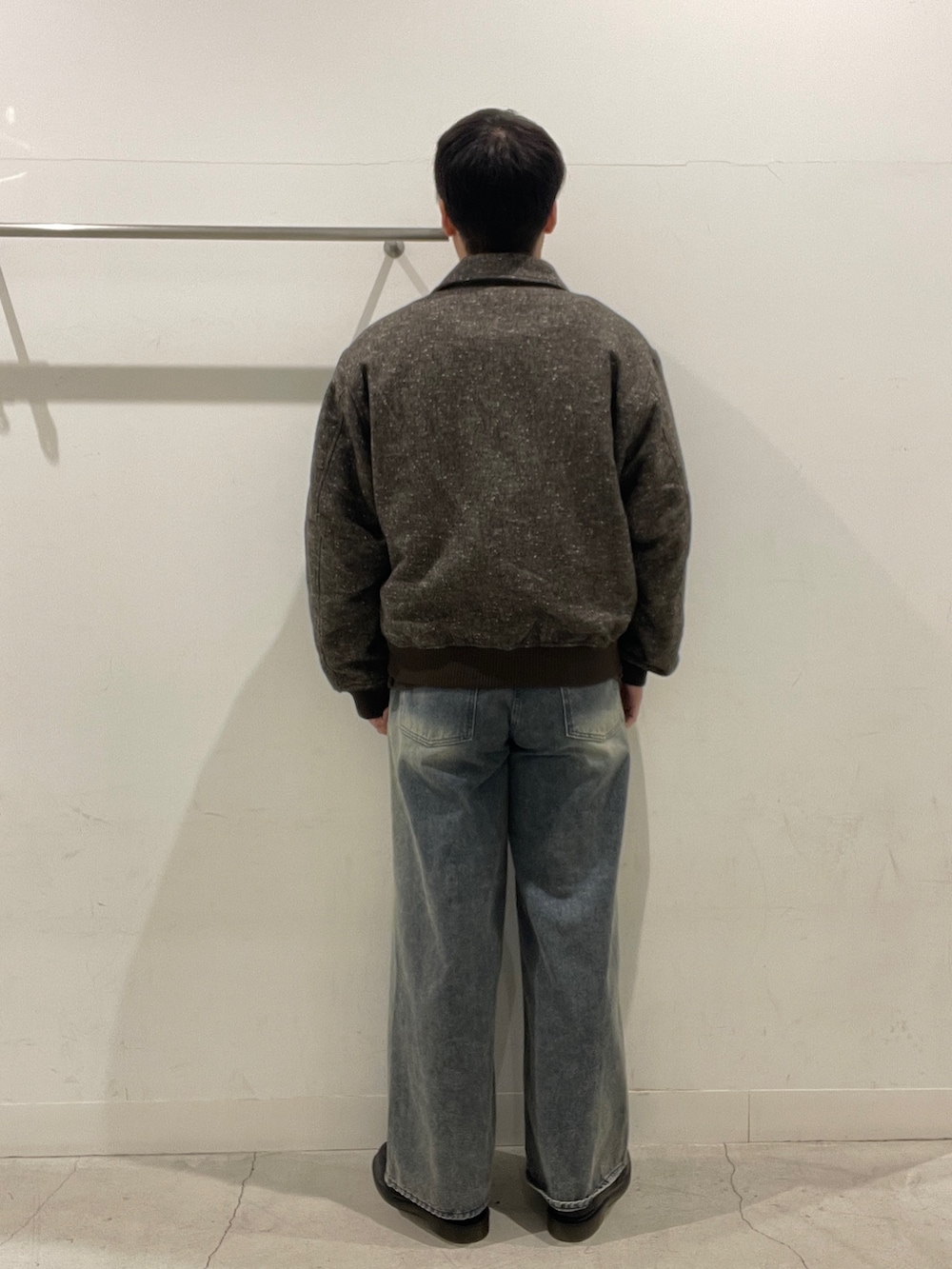 ブラウンのバイカラーニットブルゾンにネップ素材のブルゾンを重ねました!