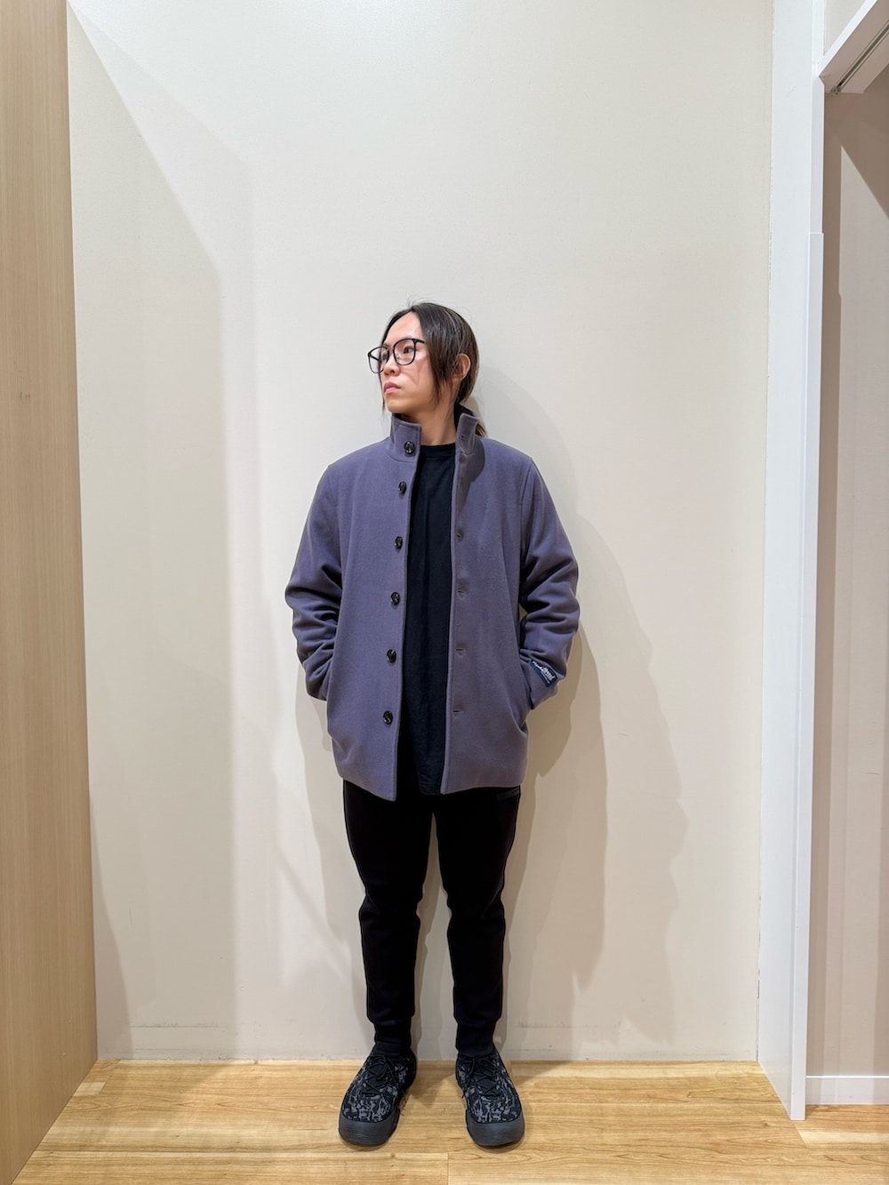 今回はウールブレンドスタンドカラーコートです。