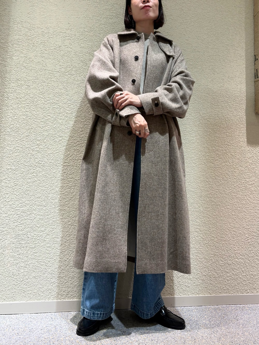 ウールヘリンボーン生地で、ハンサムな雰囲気で着用頂けるデザインのコートです。