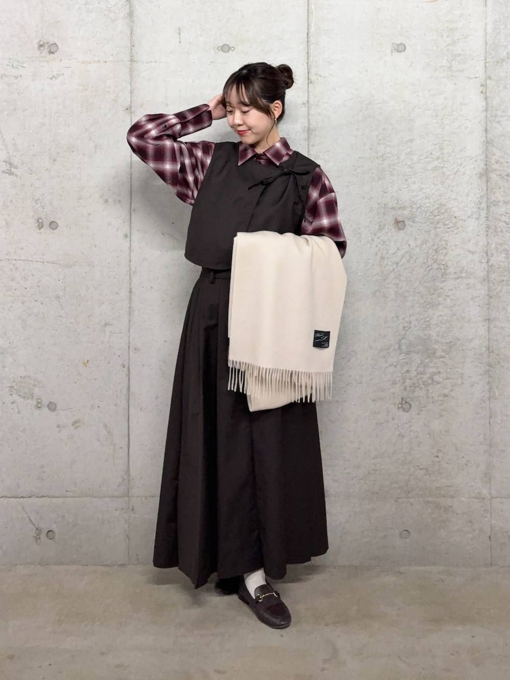 メンズライクなイメージなオンブレチェックシャツですが、ワンピースなどのインナーにもお使いいただけます🥹✨