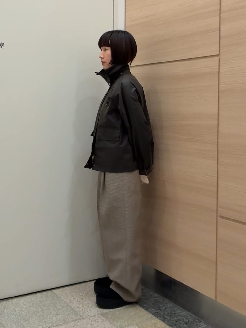 デニムとかでもカジュアルで可愛いんやけど、ちょっとワントーンで、おじっぽいスタイルが可愛い