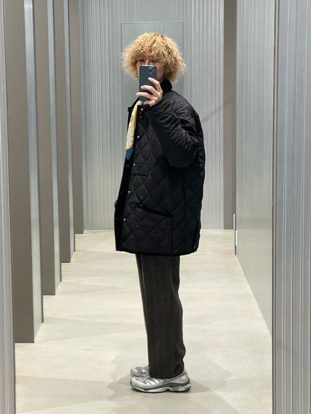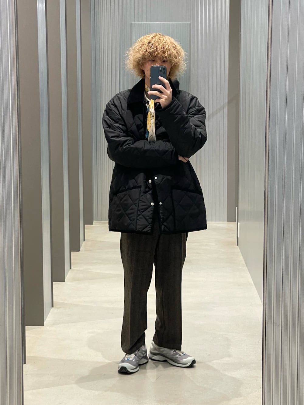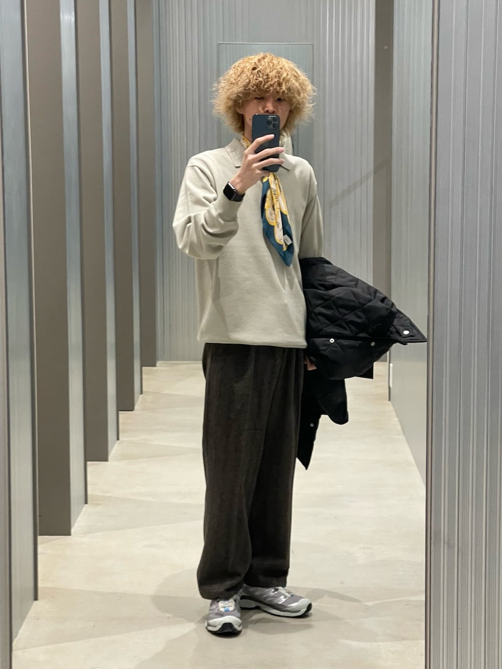 スカーフを足してロンドン風に。