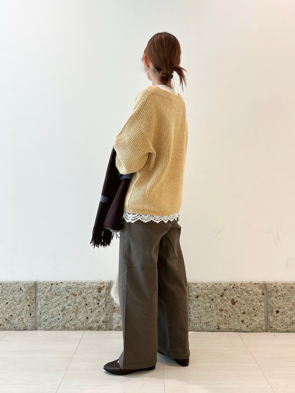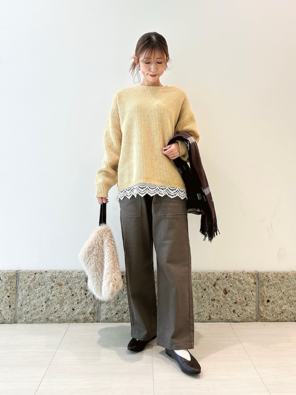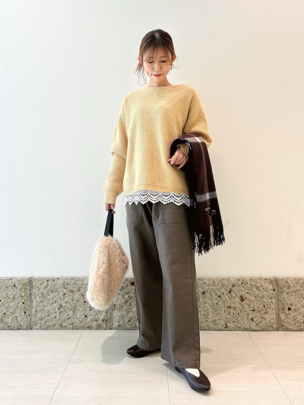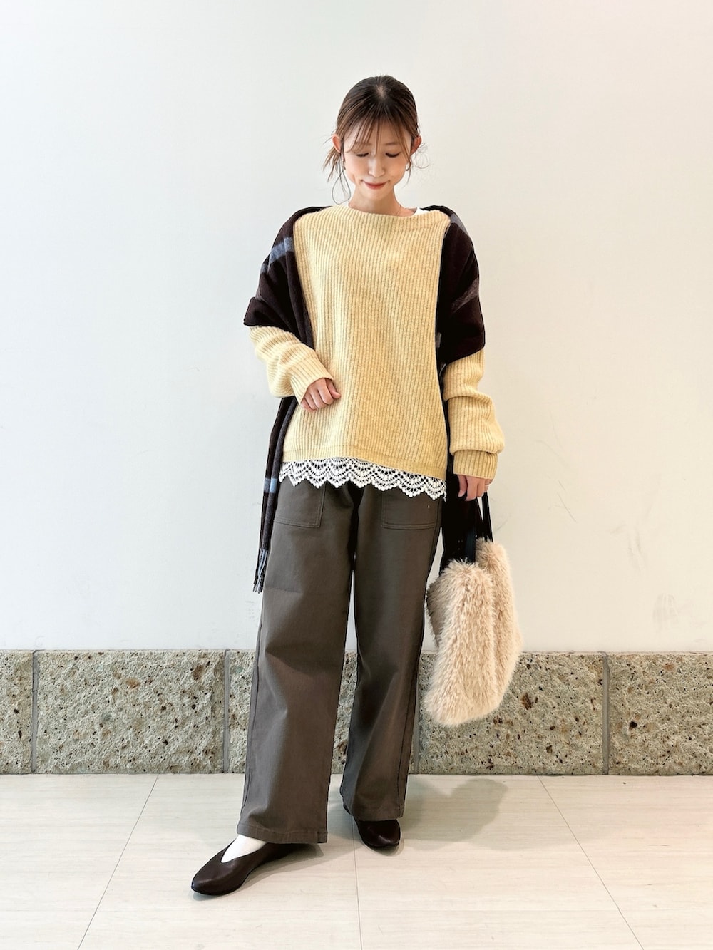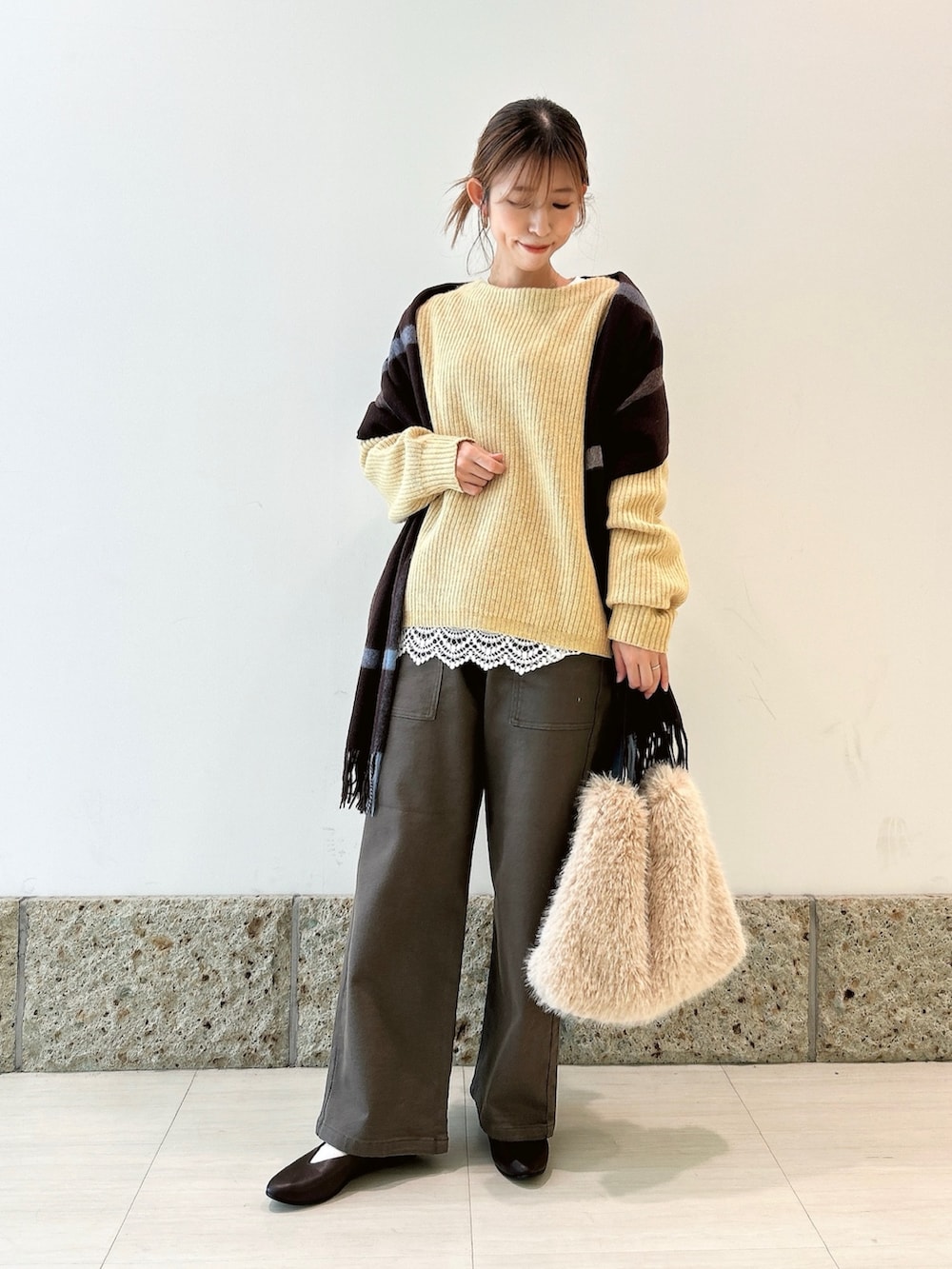 トップスは柔らかなイエローカラーが可愛いニット💛