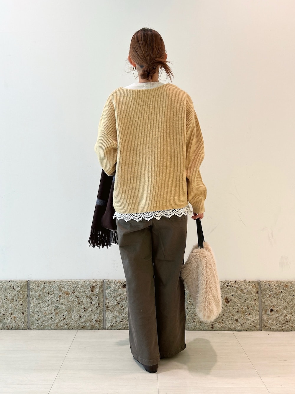 インナーには裾レースが可愛いカットソーをレイヤード。
