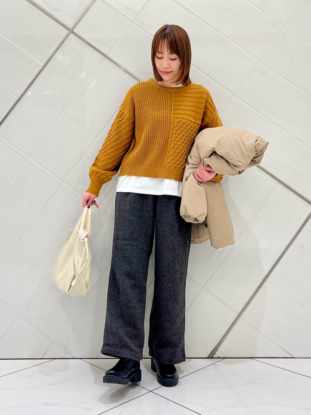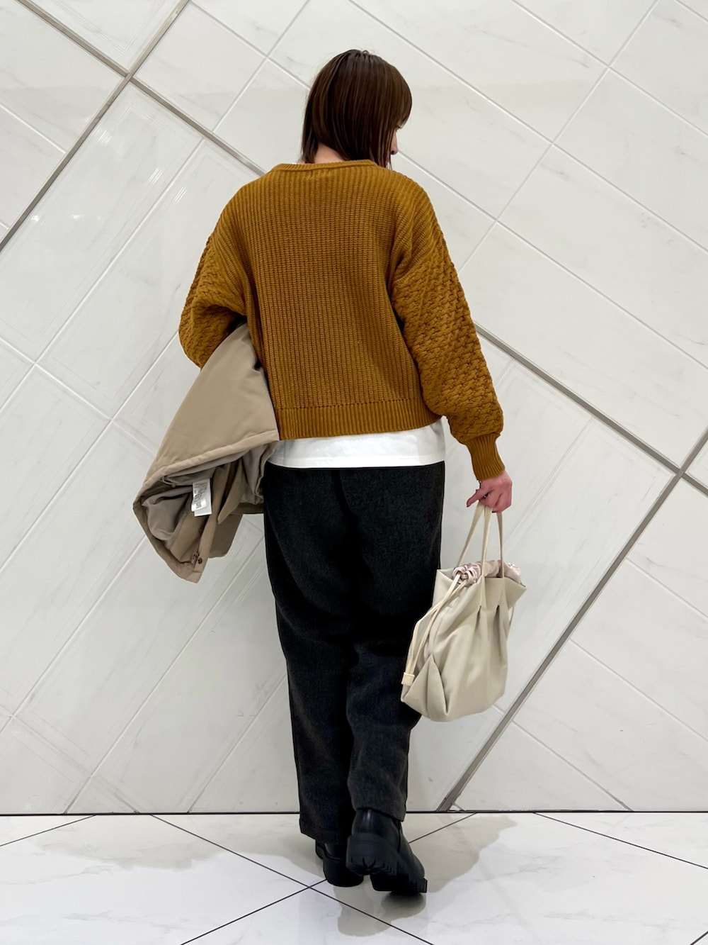 DOORSパッチワーク柄袖ボリュームニット- 着用カラー: