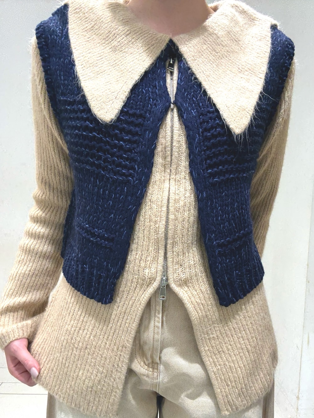 襟付きのニットはベストと合わせて着ても1枚で着ても可愛いです!