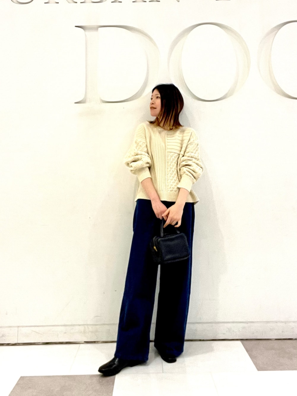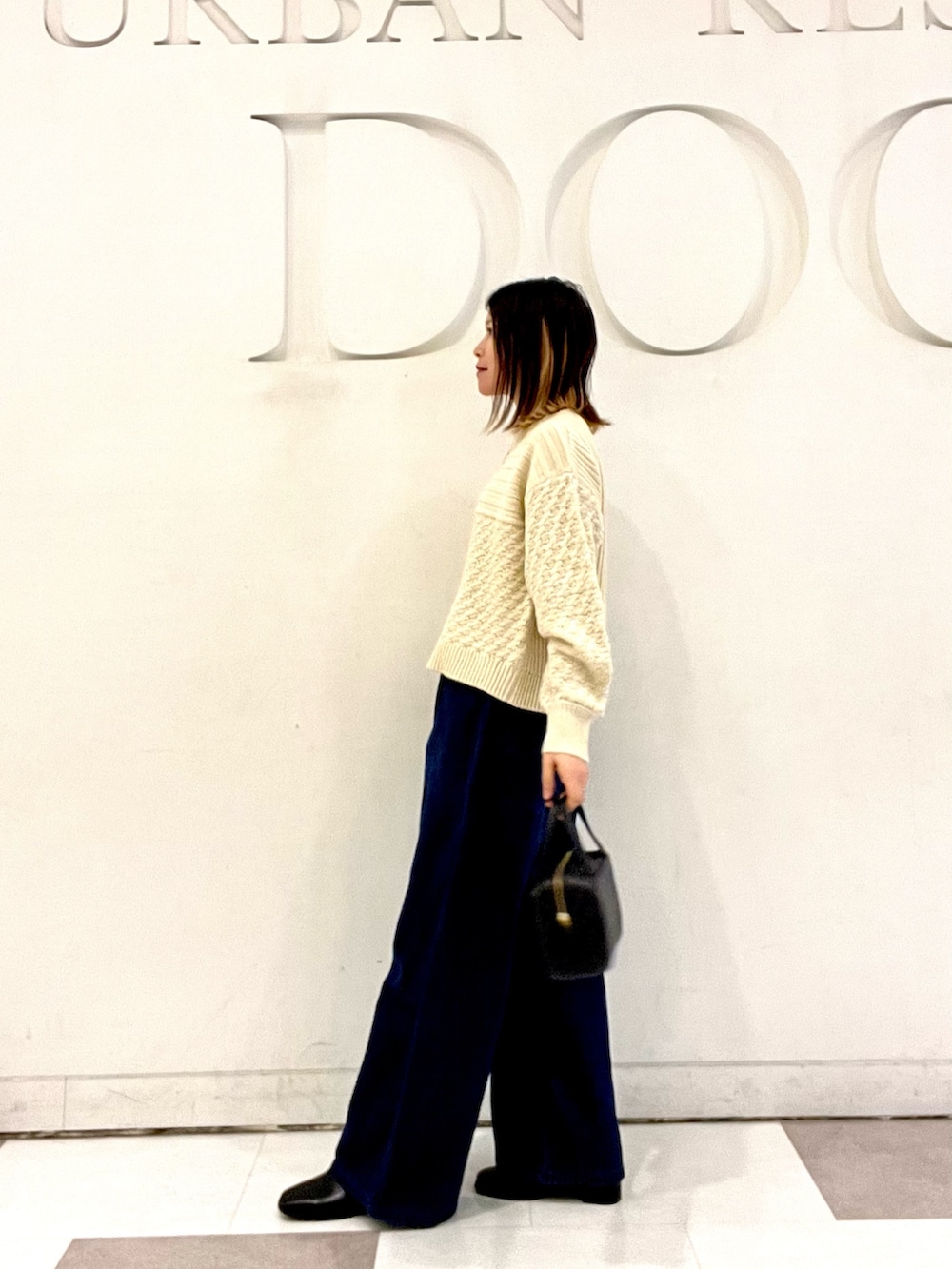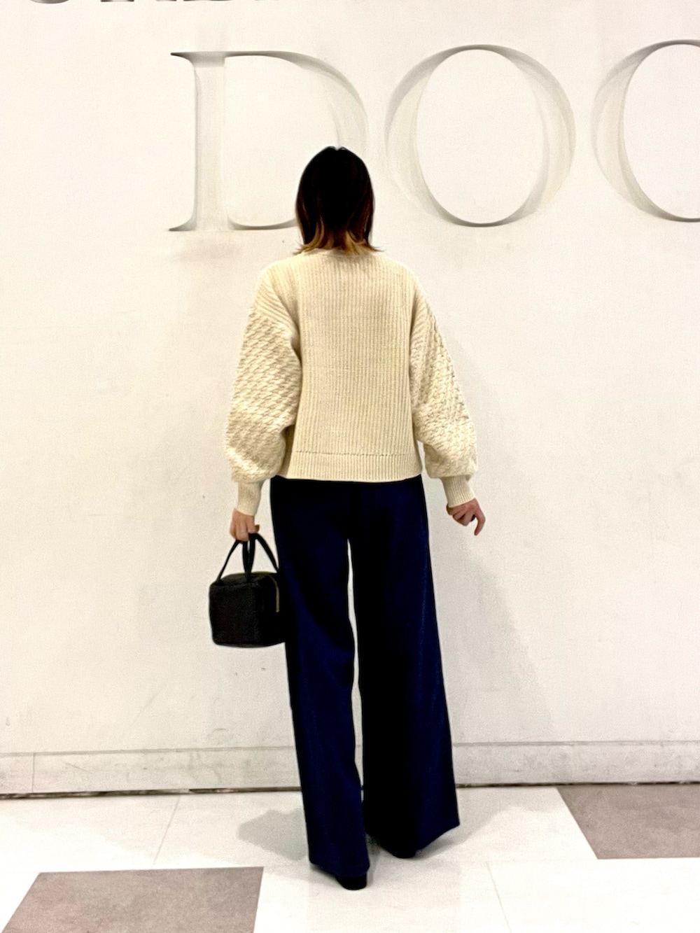 パッチワーク柄のニットは袖のボリューム感が可愛く一枚で主役になるアイテム🧶バランスの取りやすい着丈で合わせるボトムスを選びません◎