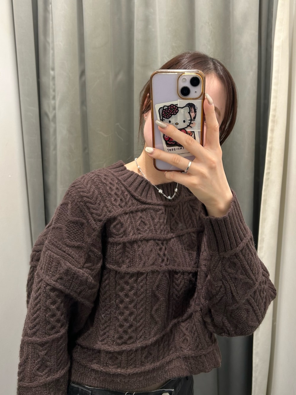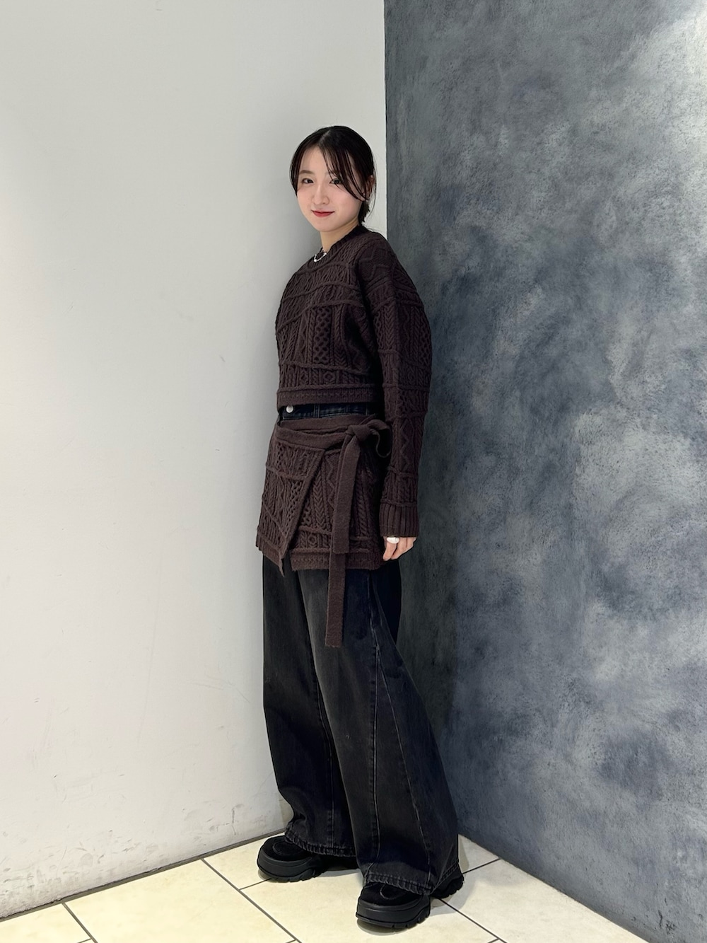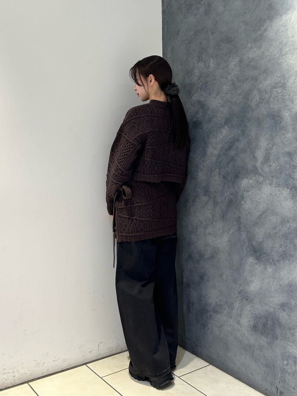 表情のあるケーブル編みニットを上下で合わせた、統一感のあるスタイリング💫