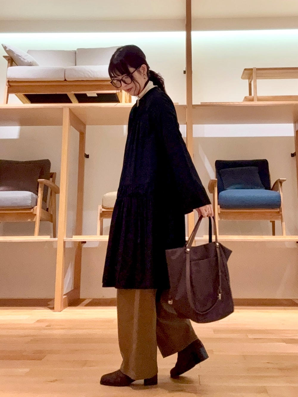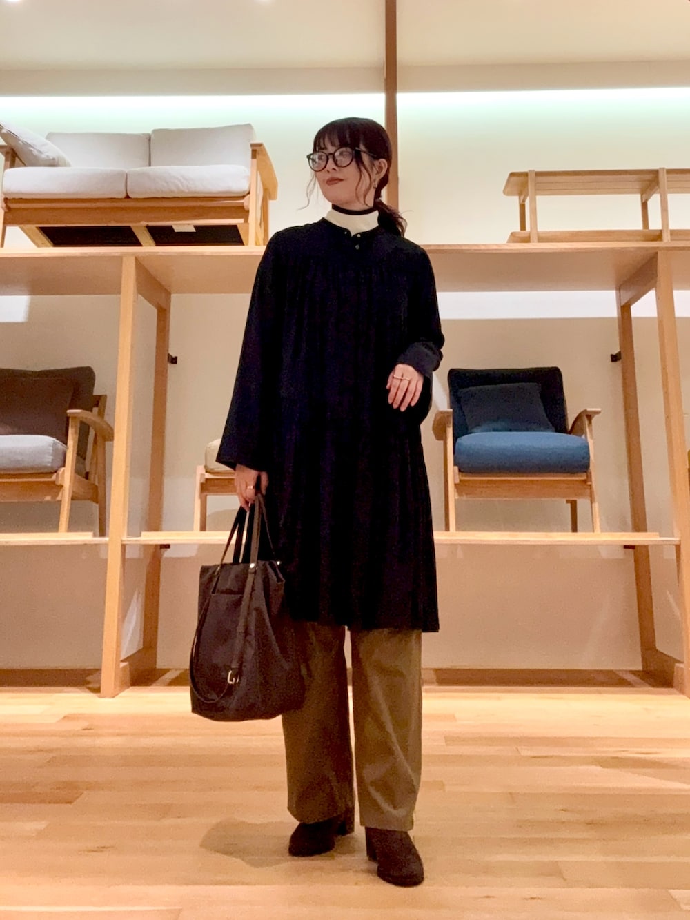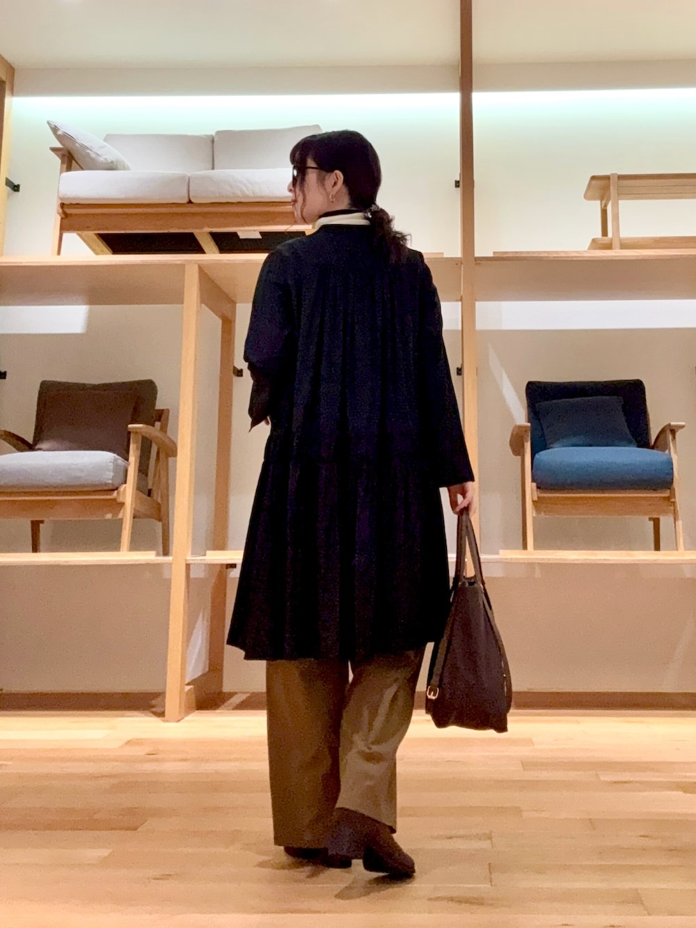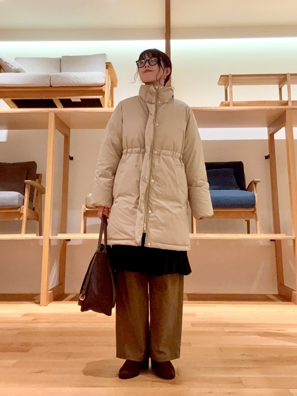 パンツやブーツ、バッグは茶系でまとめています🤎