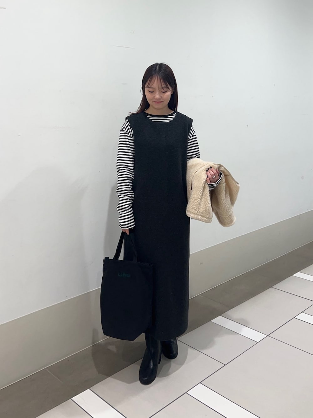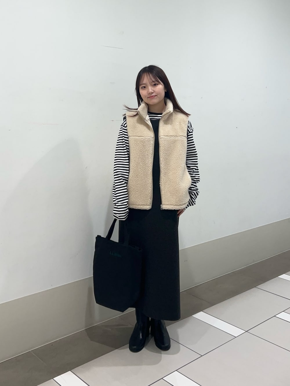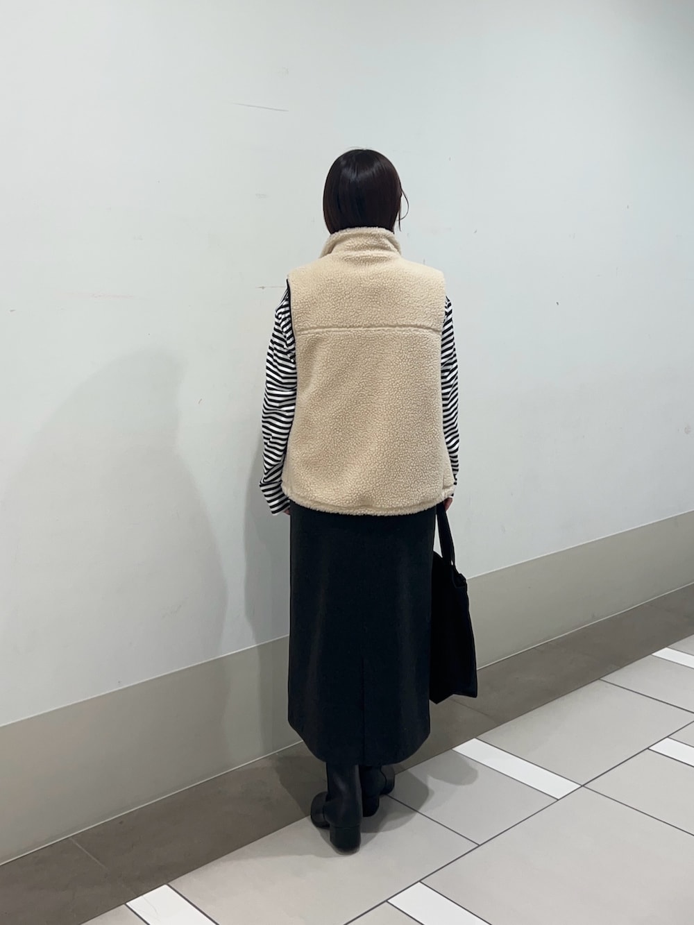 ボアベストを合わせるだけでいつものコーデが女性らしく可愛い雰囲気になります✨