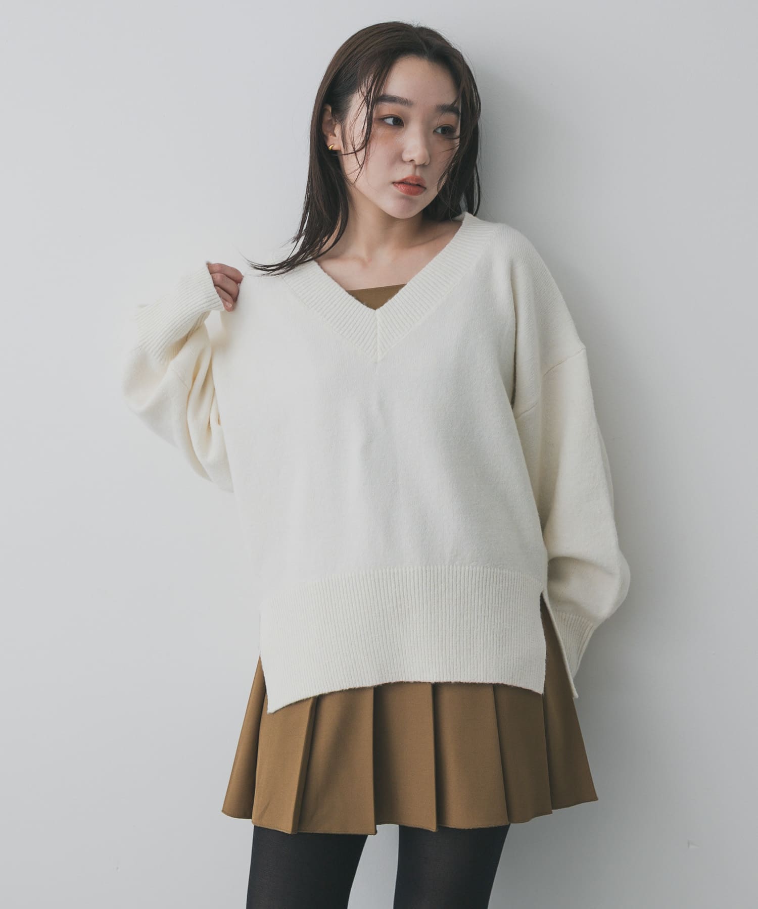 SENSE OF PLACE『洗濯可』サイドスリットVネックニット- 着用カラー: