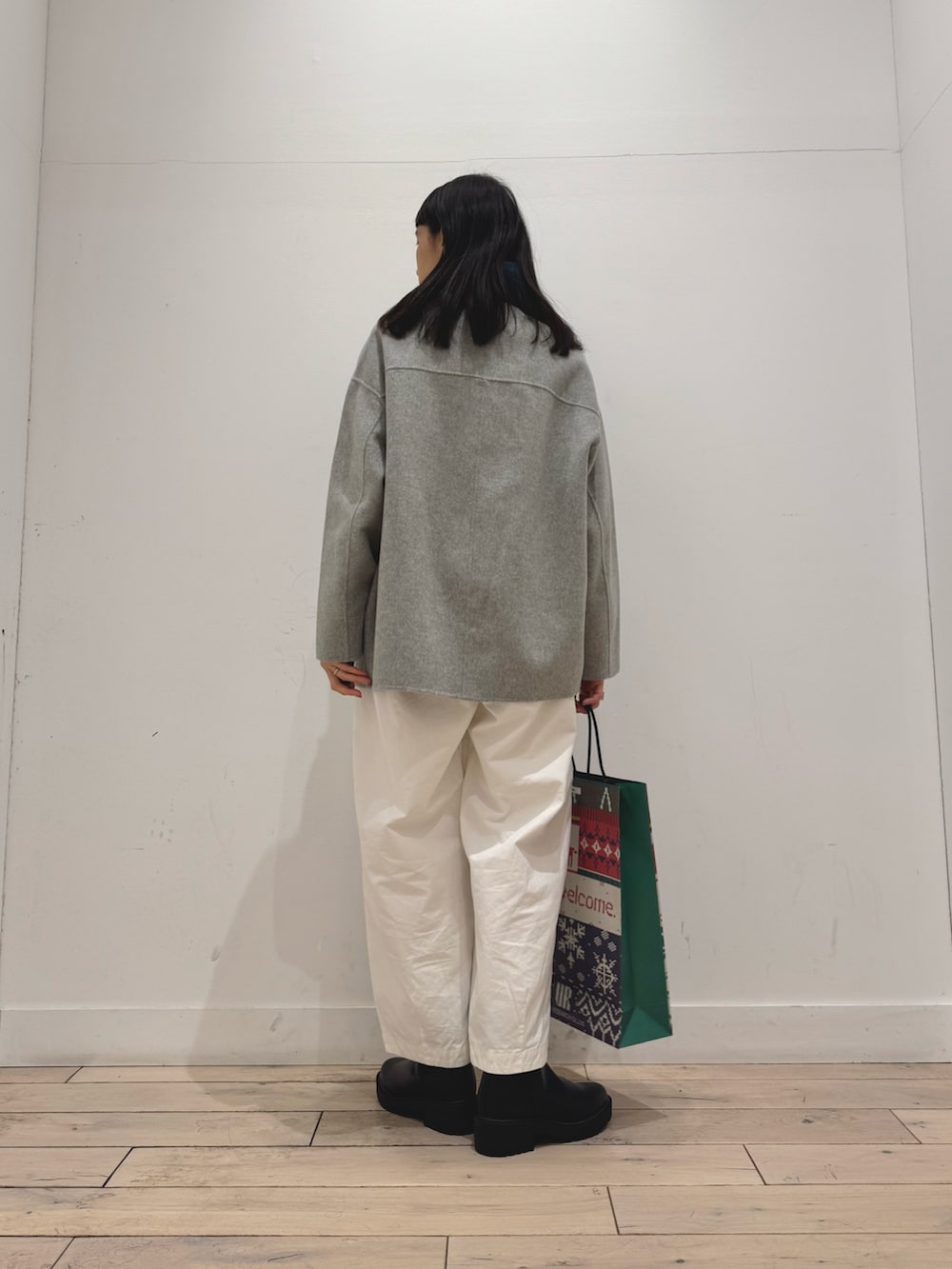 アウターは裏地なしのウールアウターですが、ゆとりがあるのでインナーダウン等入れられるので、切れる期間長めです◎