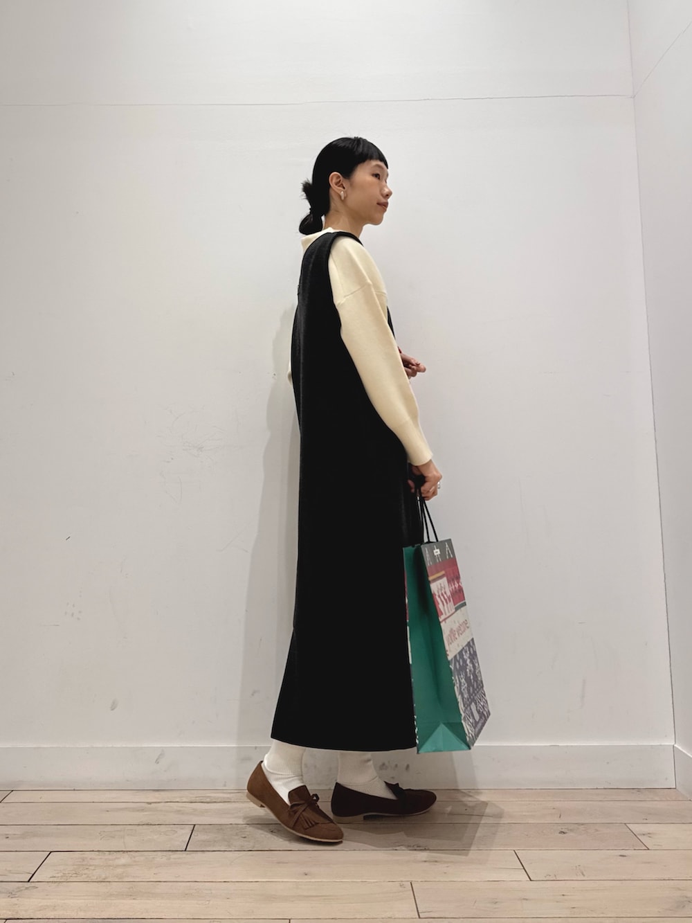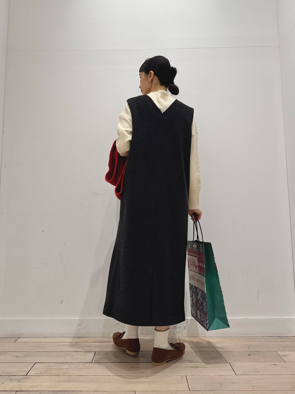 後ろがVネックになっていて髪の毛アップスタイルにするとスッキリな印象になります☺️
