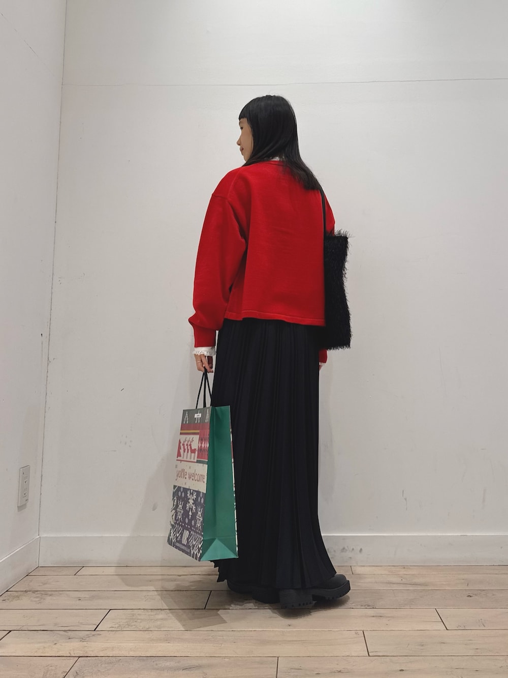 丈が短めで全体の半分以上赤にならないので、派手さも控えめです。リングドットボタンがポイントになります◎