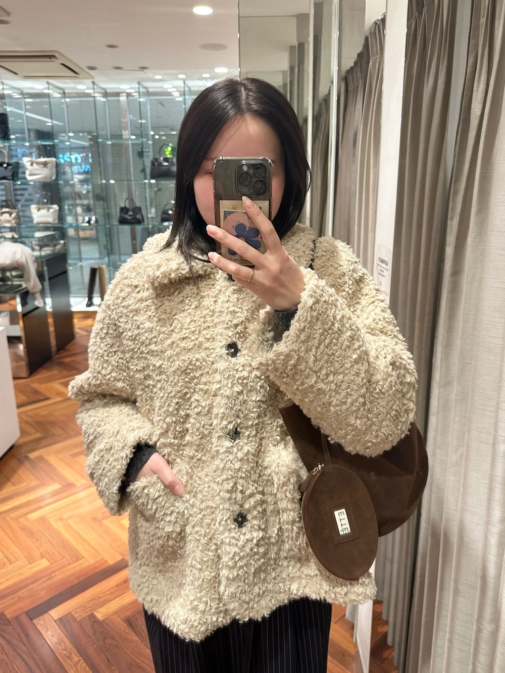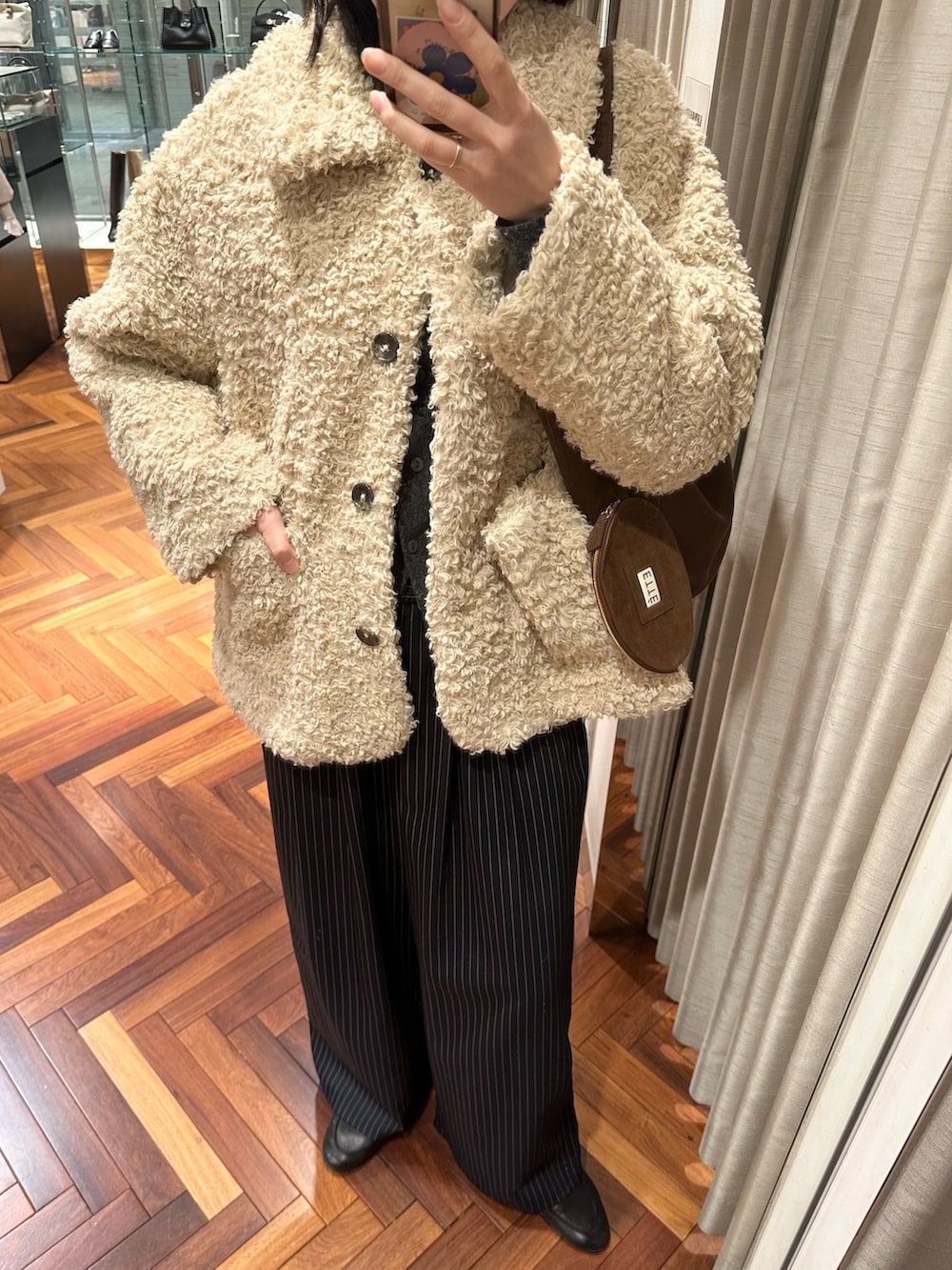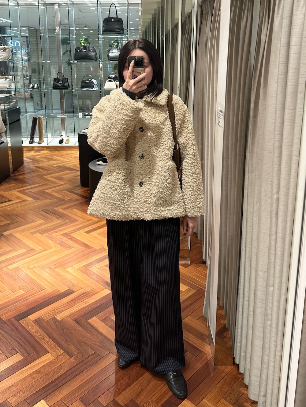 大きい襟を目立たせてボタンは全締めが気分です♩