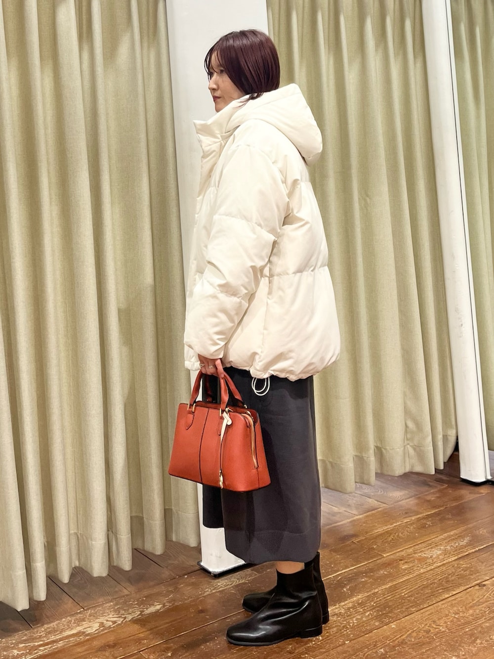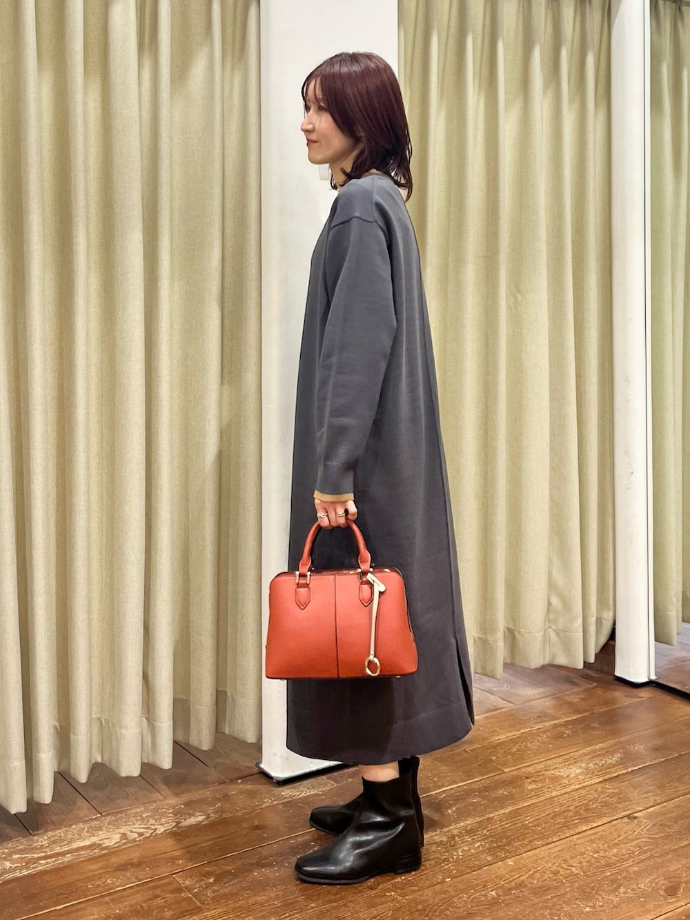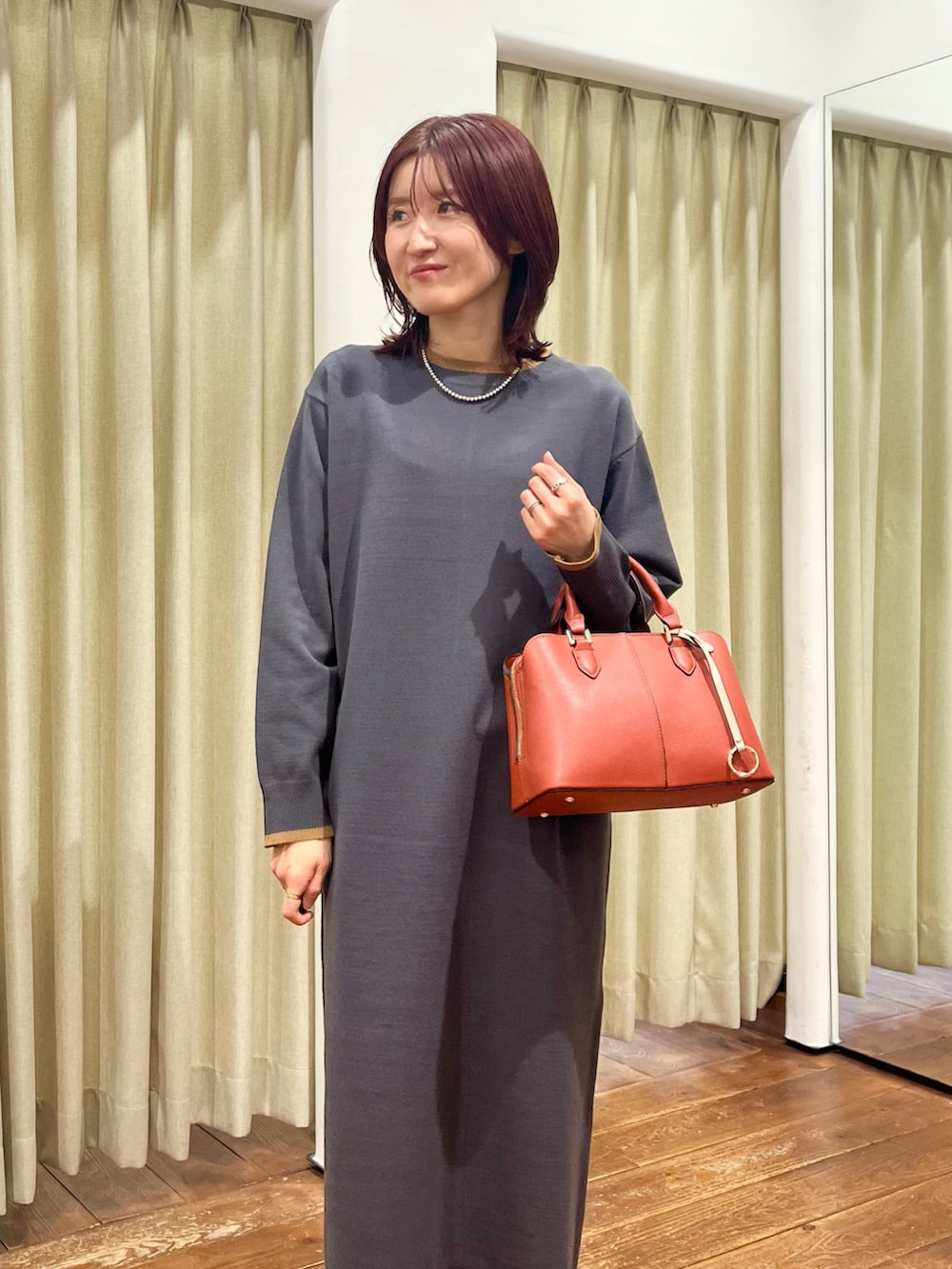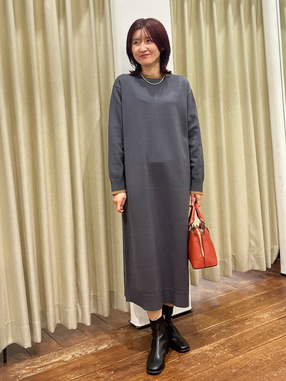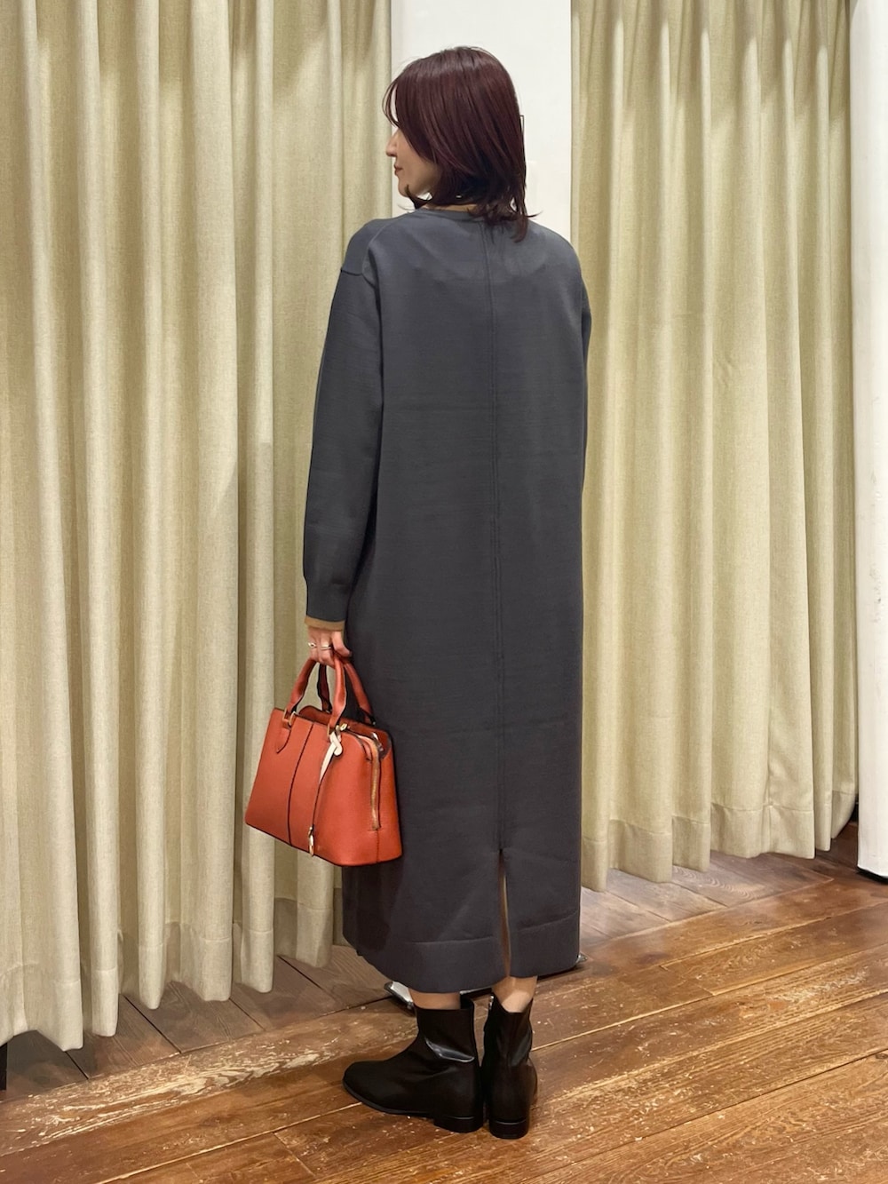 ワンピースはニットでゆったりしているので着痩せ効果も抜群です◎後ろにスリットが入っていて足捌きもしやすいです。