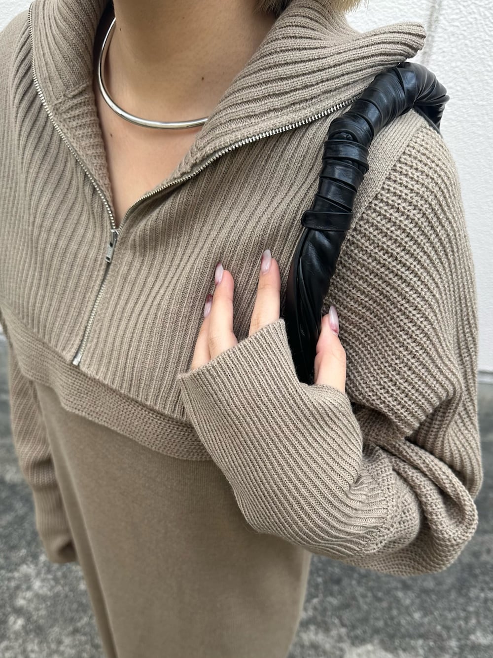 ワンピースとハーフZIPニットは別々になっているので、違うアイテムと重ねても着用していただけます!
