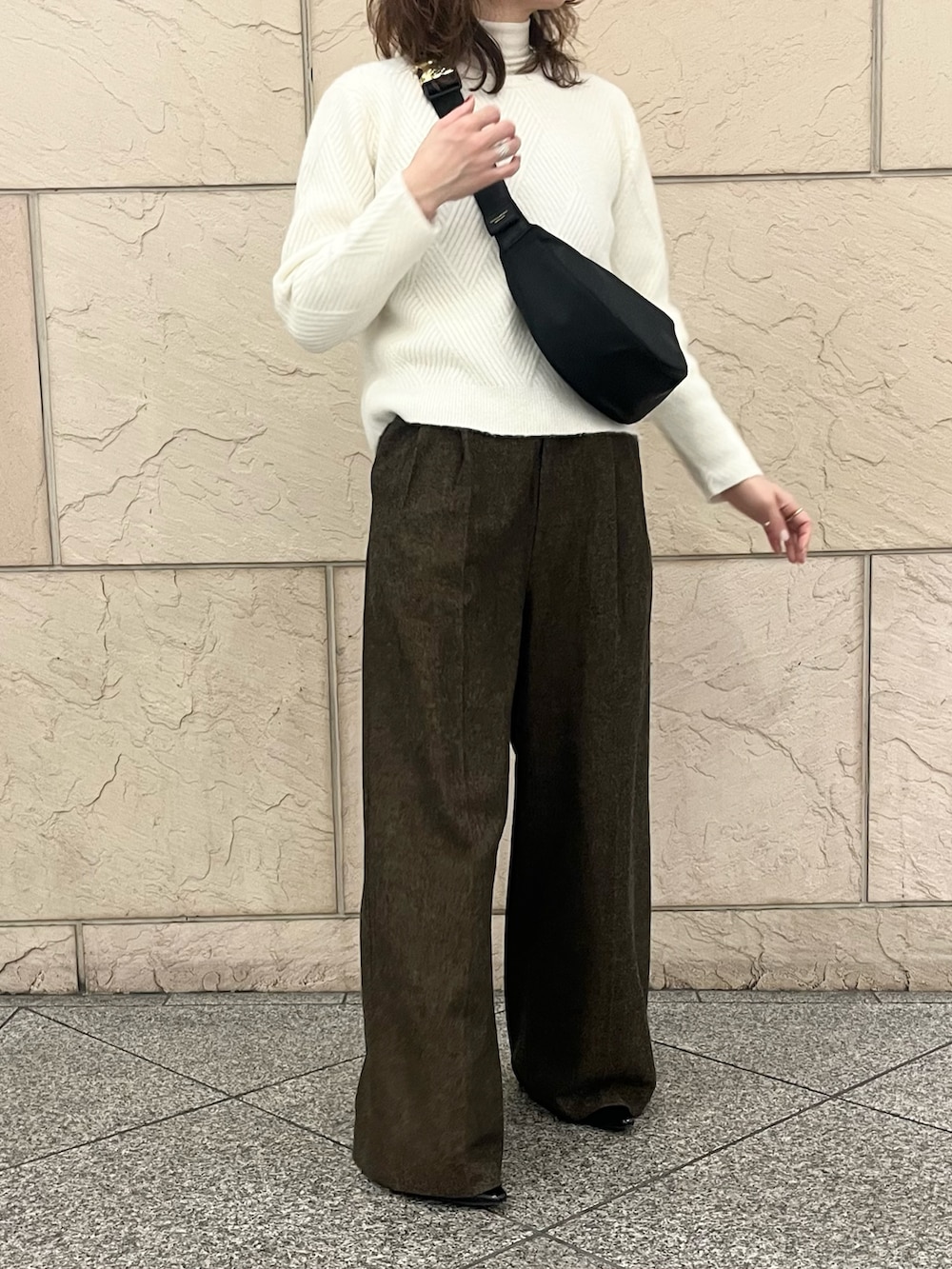 ほんのり入ったラメが甘すぎないコーディネートにも相性⚪︎です。私が着るとややコンパクトぎみですが、下に薄いニットは重ね着できて暖かいです。軽量ニットで着心地も良いです!