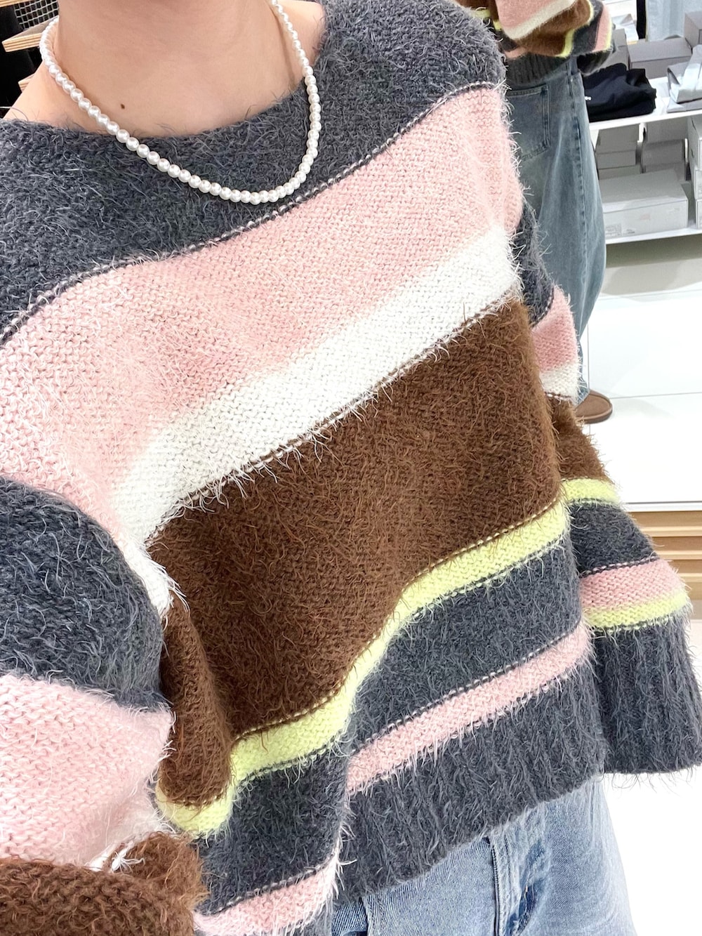 SENSE OF PLACE『洗濯可』シャギーハイショクボーダーニット- カラー: