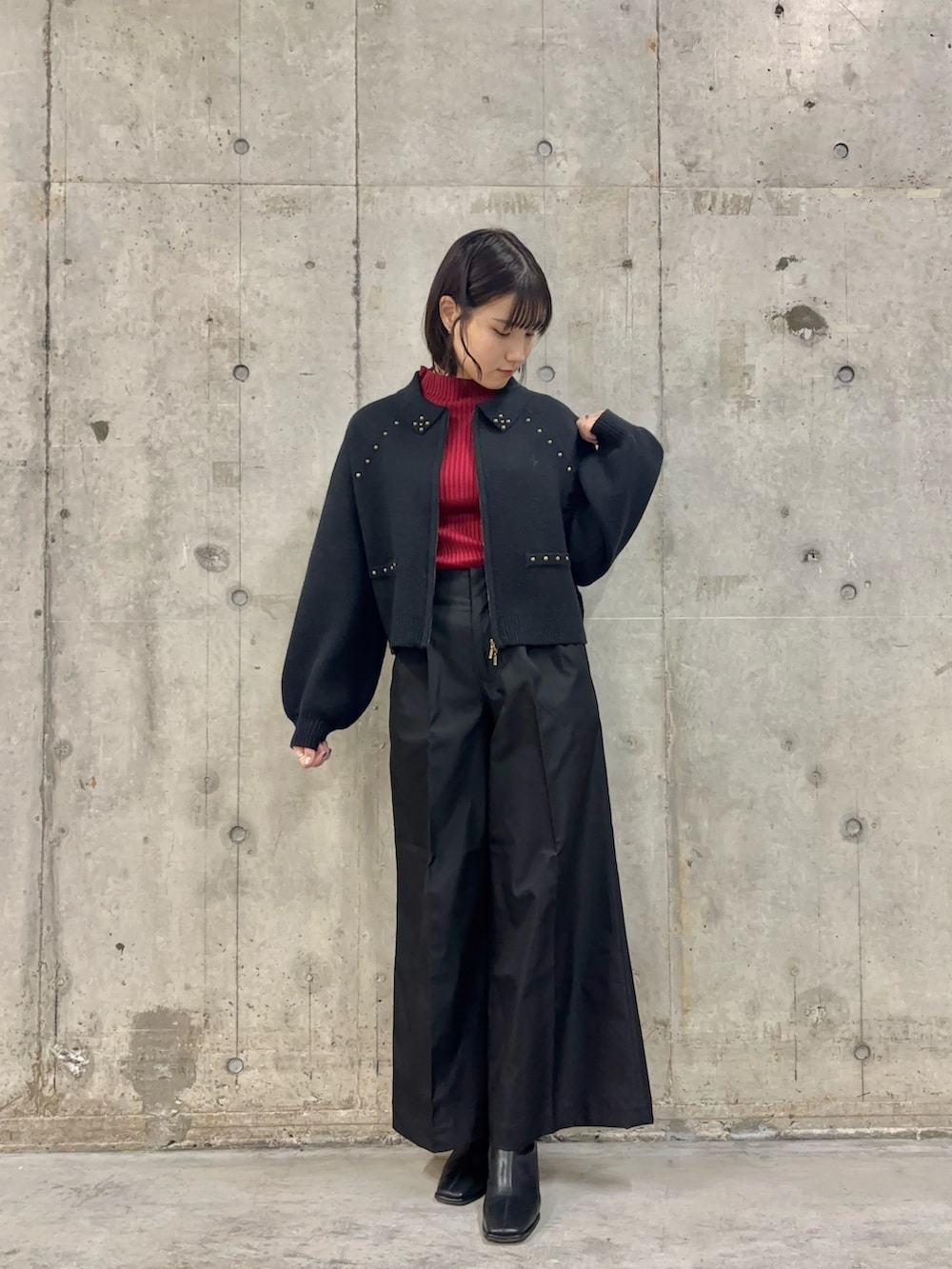 今回はカッコよく決まるよう、赤のニットをインナーに仕込み、黒でまとめました🖤