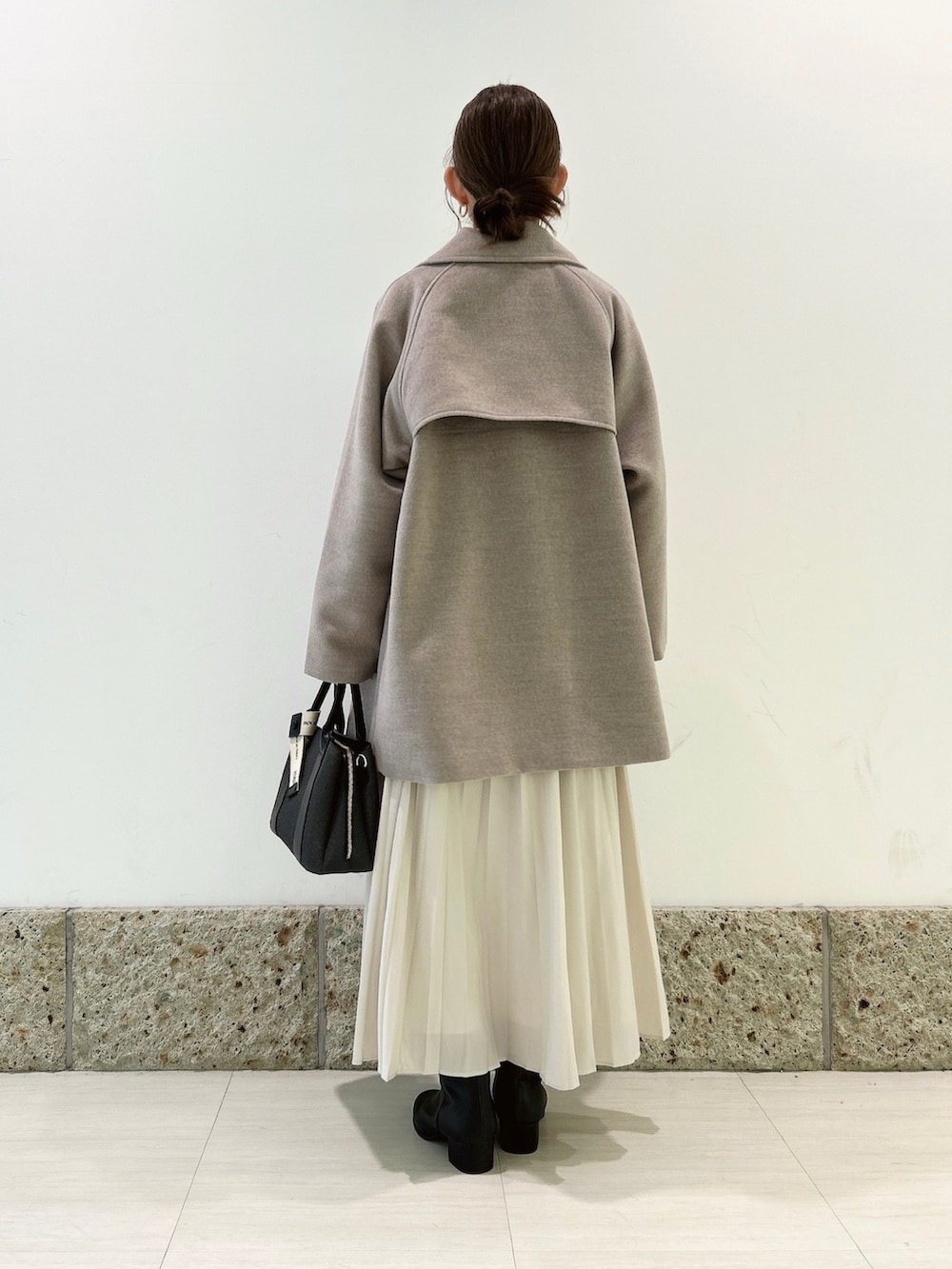 落ち感のキレイな生地で、動くと揺れるシルエットが