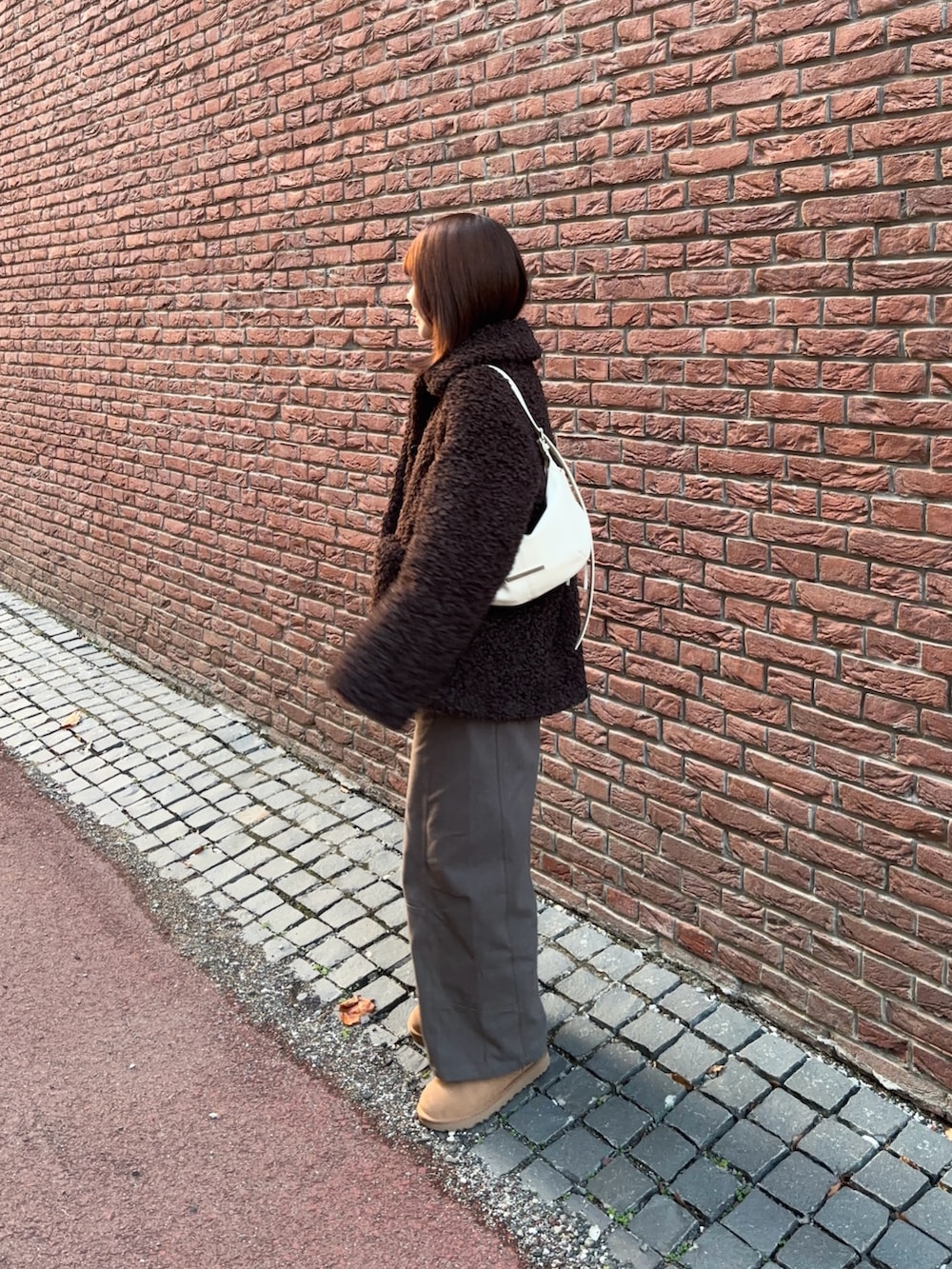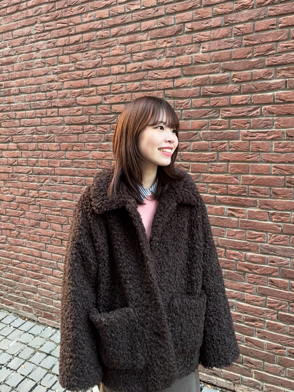 トレンドカラーのブラウンを着用しました!光沢感と柔らかさが魅力のファーコートです!