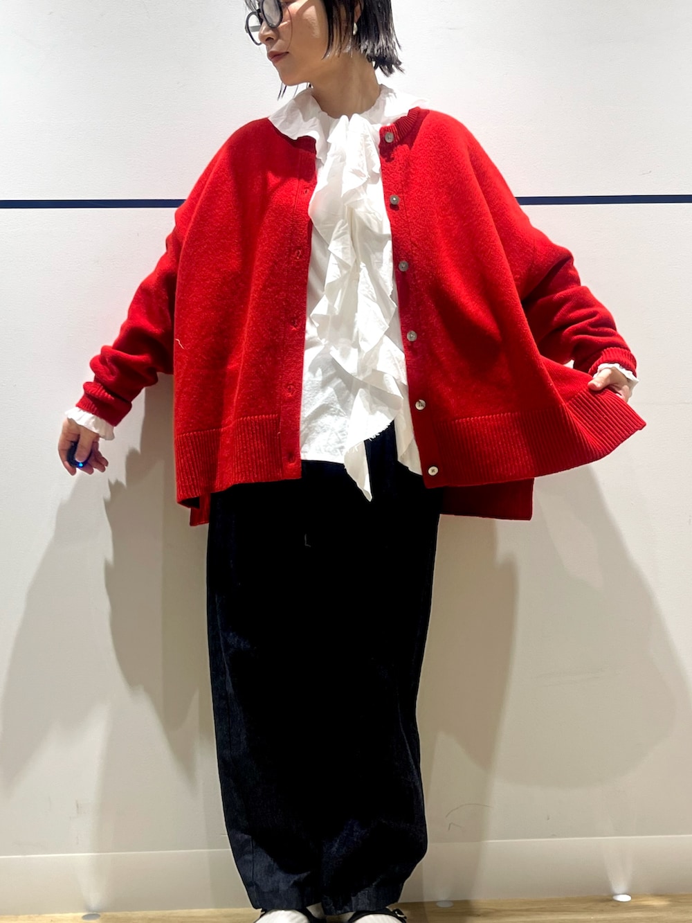 かぐれのハミルトンクルーネックカーディガンはゆったりめのシルエットで