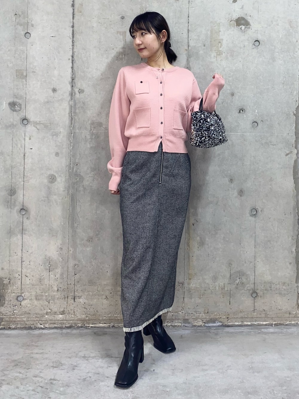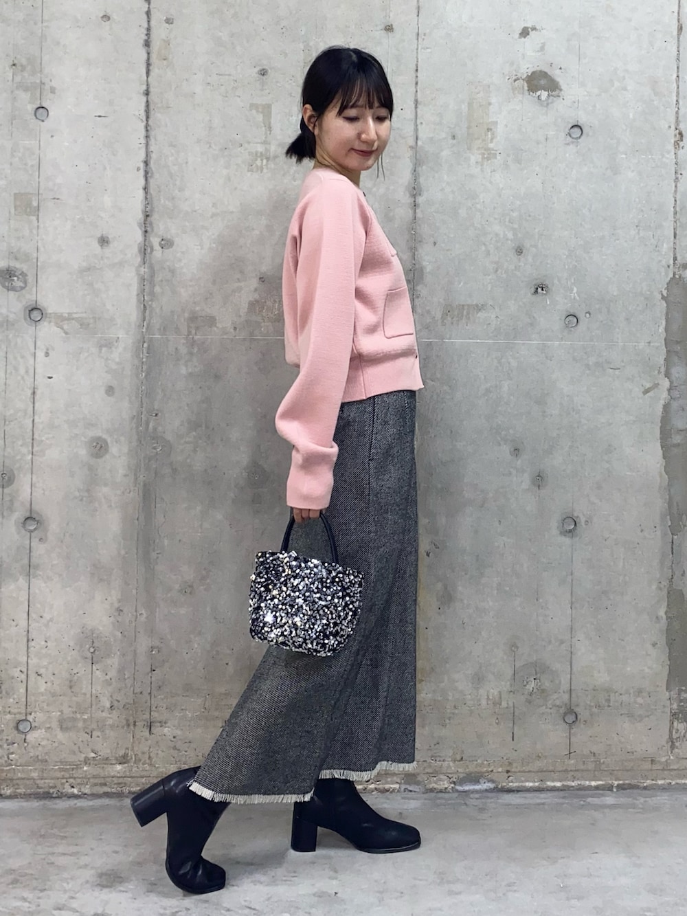 SENSE OF PLACEツイードフリンジジップスカート- 着用カラー: