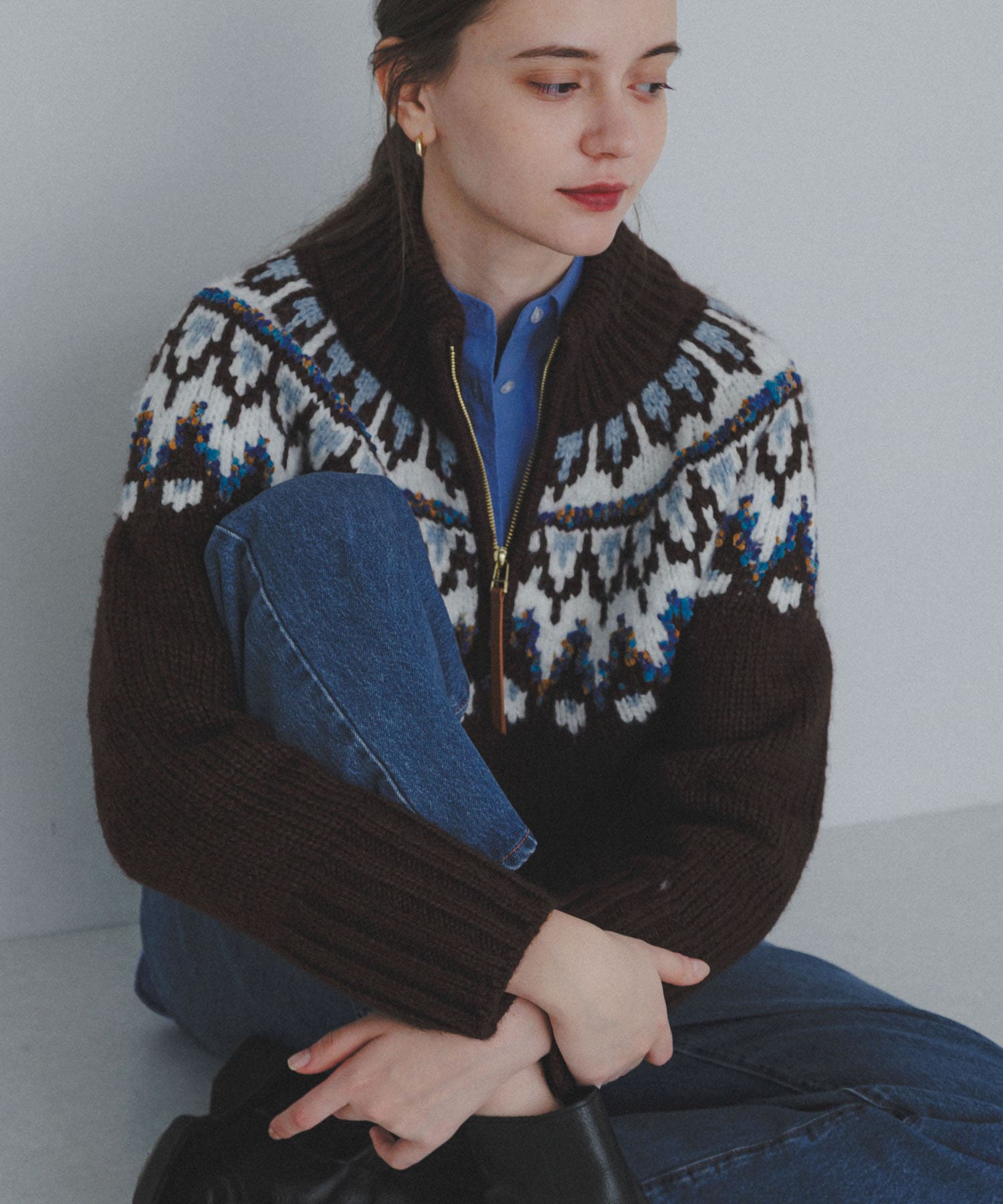 Sonny LabelハーフZIP求心ノルディック柄ニット- 着用カラー: