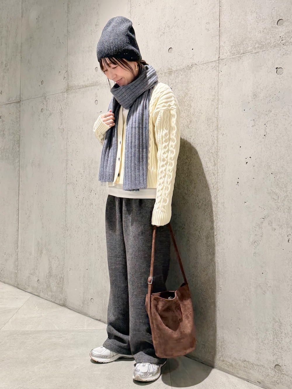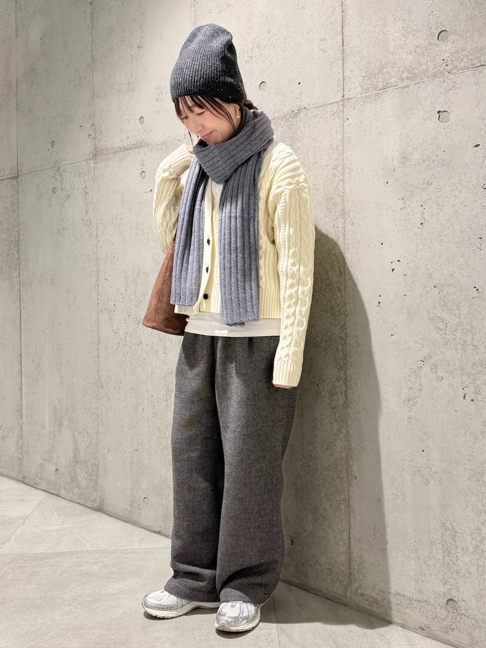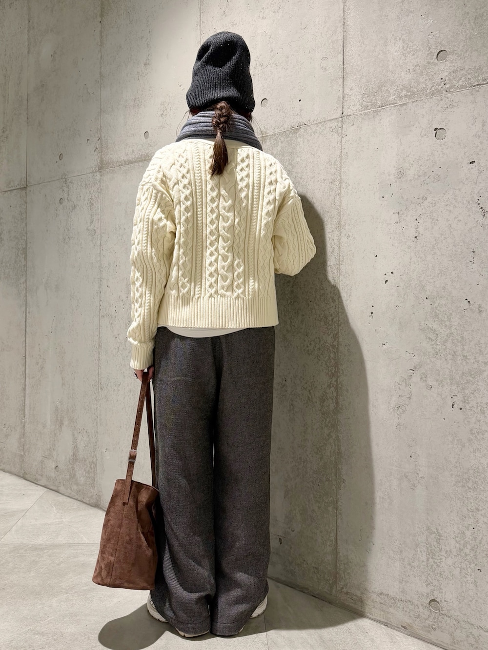 今回は、温かみのあるツイード生地が特徴的なパンツを合わせた、大人カジュアルコーディネート。