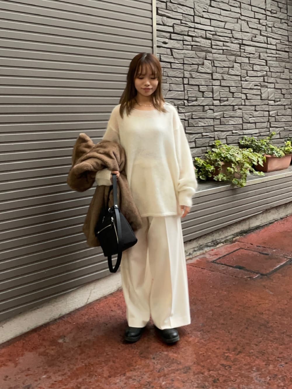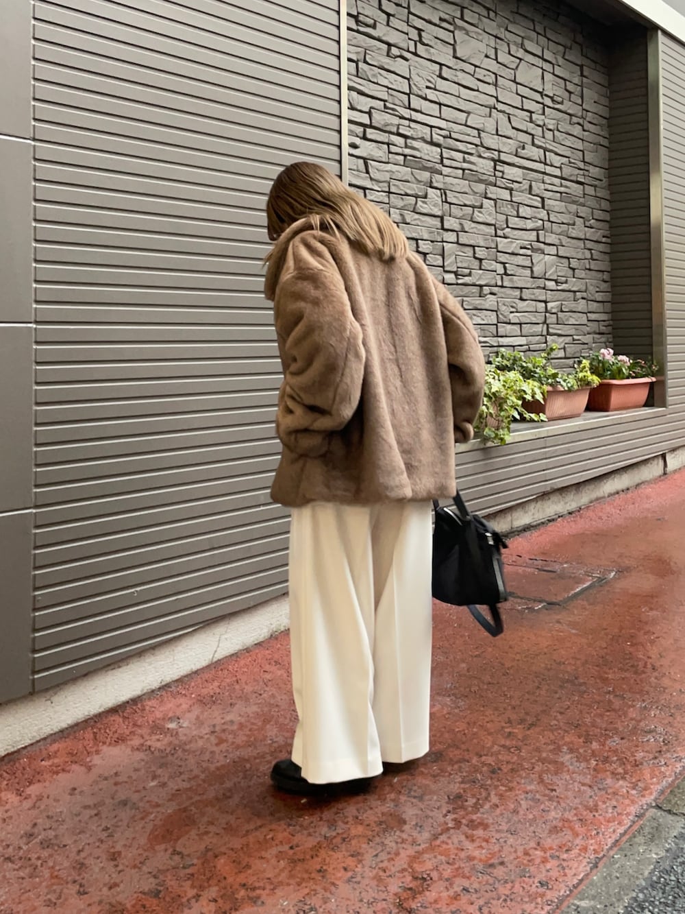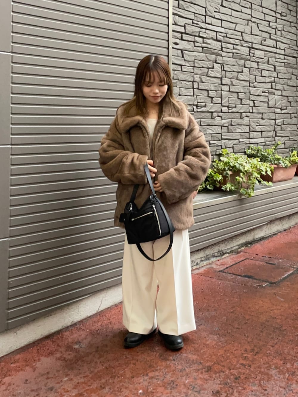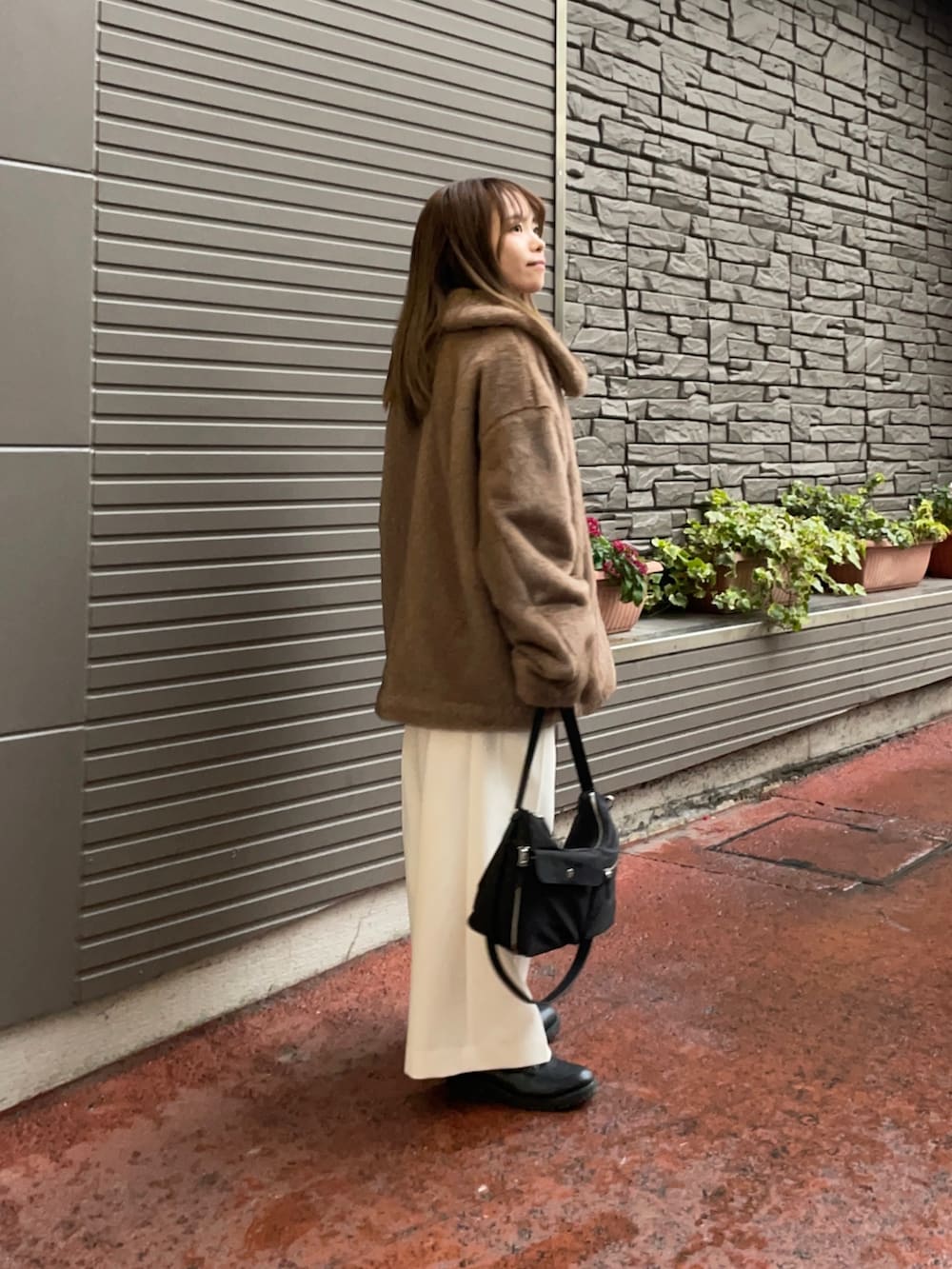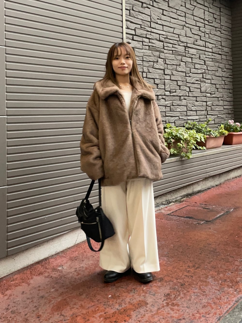羽織はミンクライクファーブルゾンで、とっても質感が柔らかく本物の毛のような触り心地で、ゆったり着れるシルエットも可愛いアイテムです!この大きすぎず、小さすぎないサイズ感と着丈がどんなボトムスとも合いますよ✨