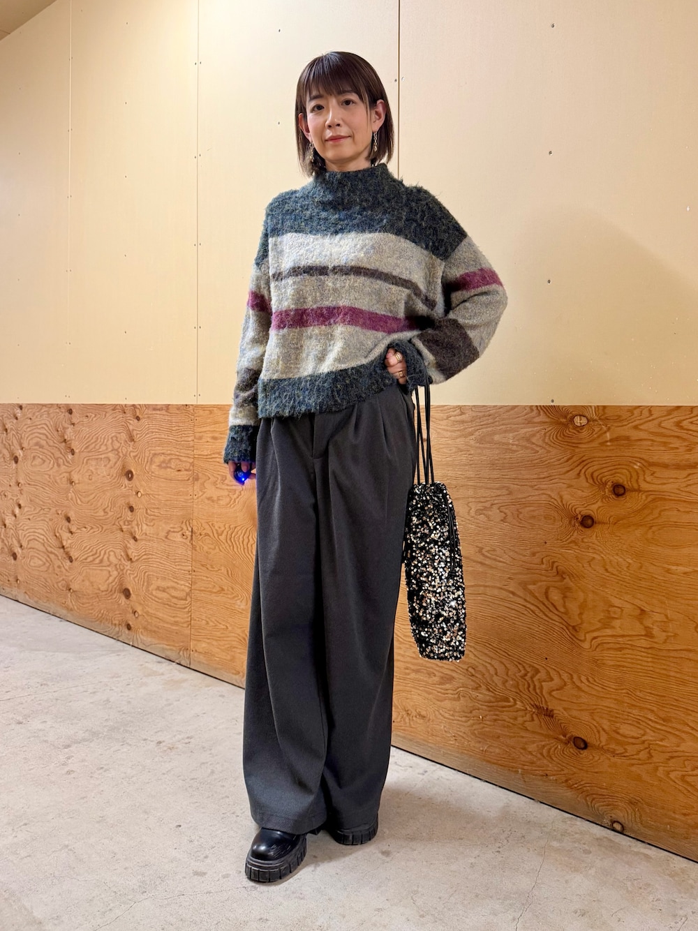 ✔︎メランジのニットは程よいハイネックで、やや厚手の生地感ですが軽くて暖かいです◎