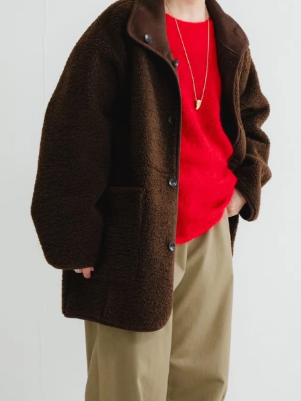 リバーシブルで楽しむ、軽くて上品なフェイクムートンコート。