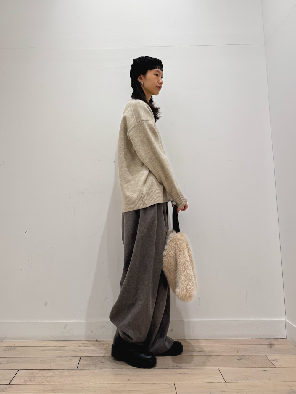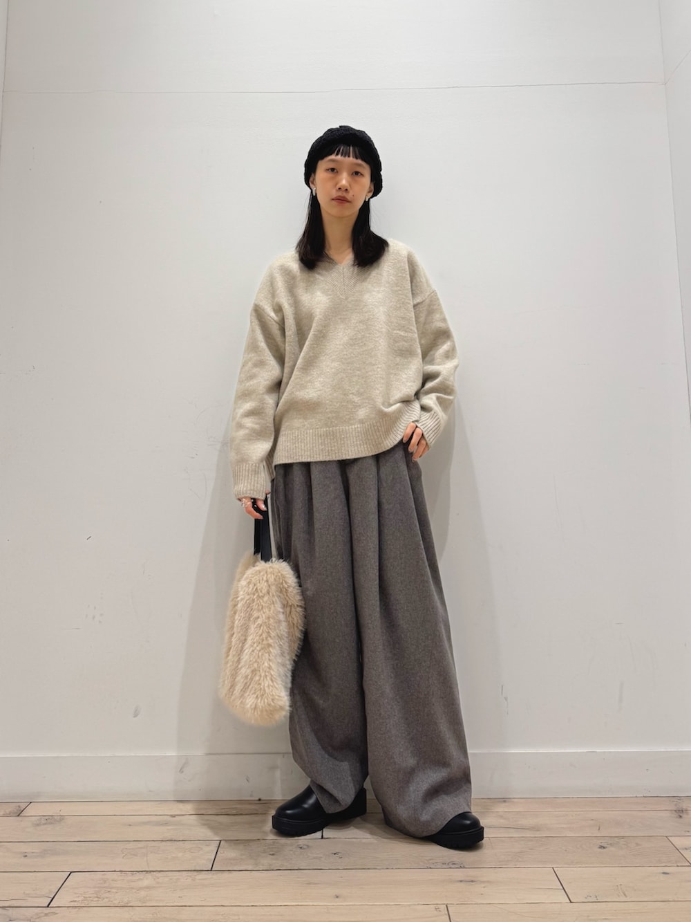 ニットのVネックは浅めなのでレイヤードしなくてもインナー見えないです◎少しもちっとした程よい厚みです。