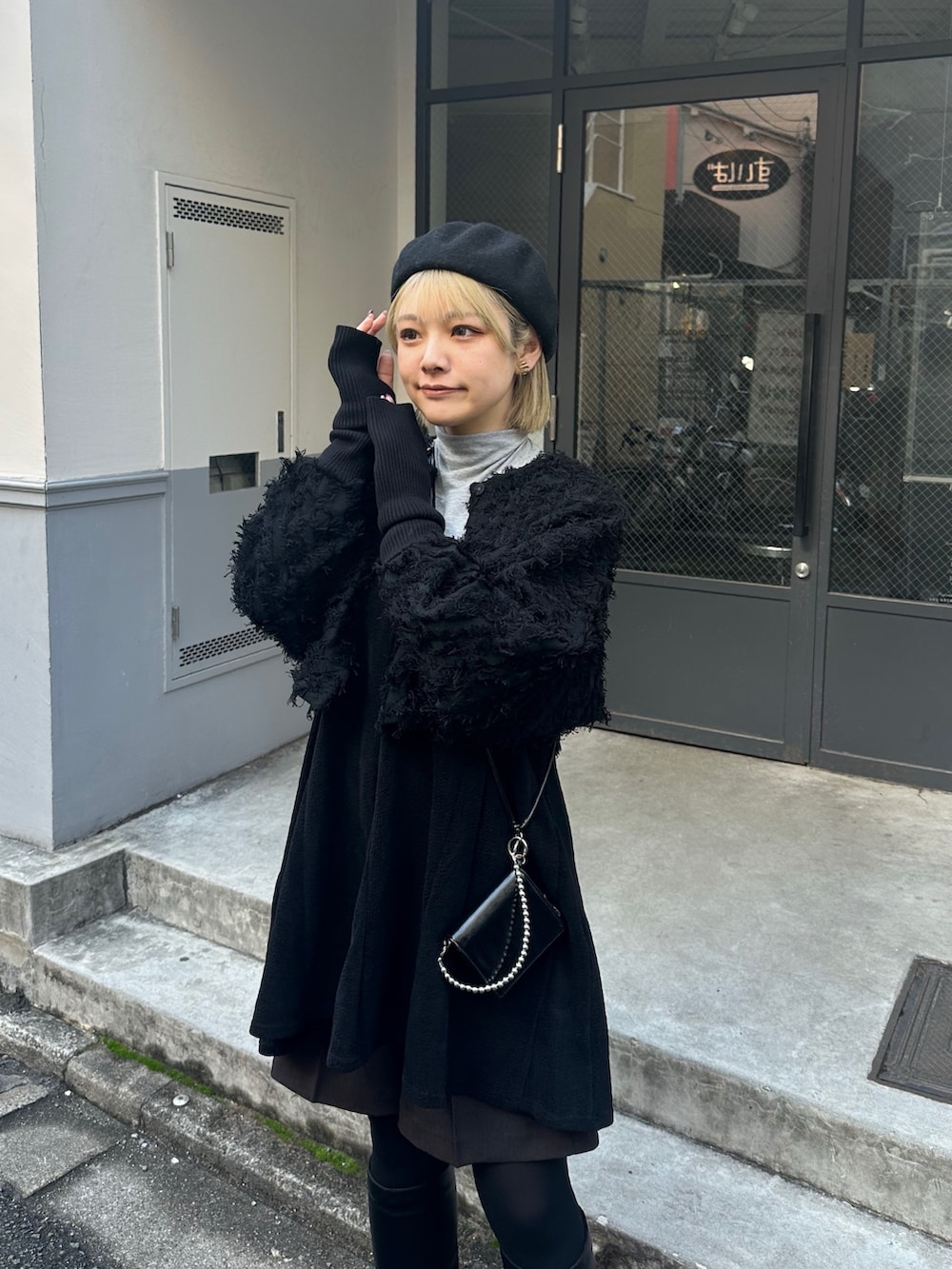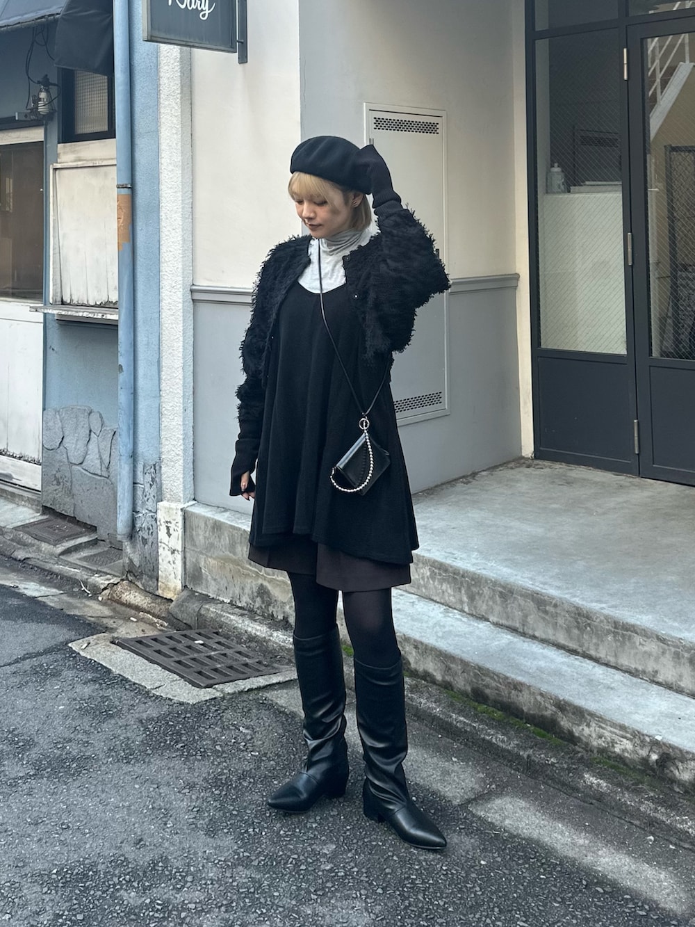 全身ブラックでモードなスタイリングにしてみました!ミニワンピースにショート丈のカーディガンをプラスすることで、スタイルUPを叶えてくれます!✨