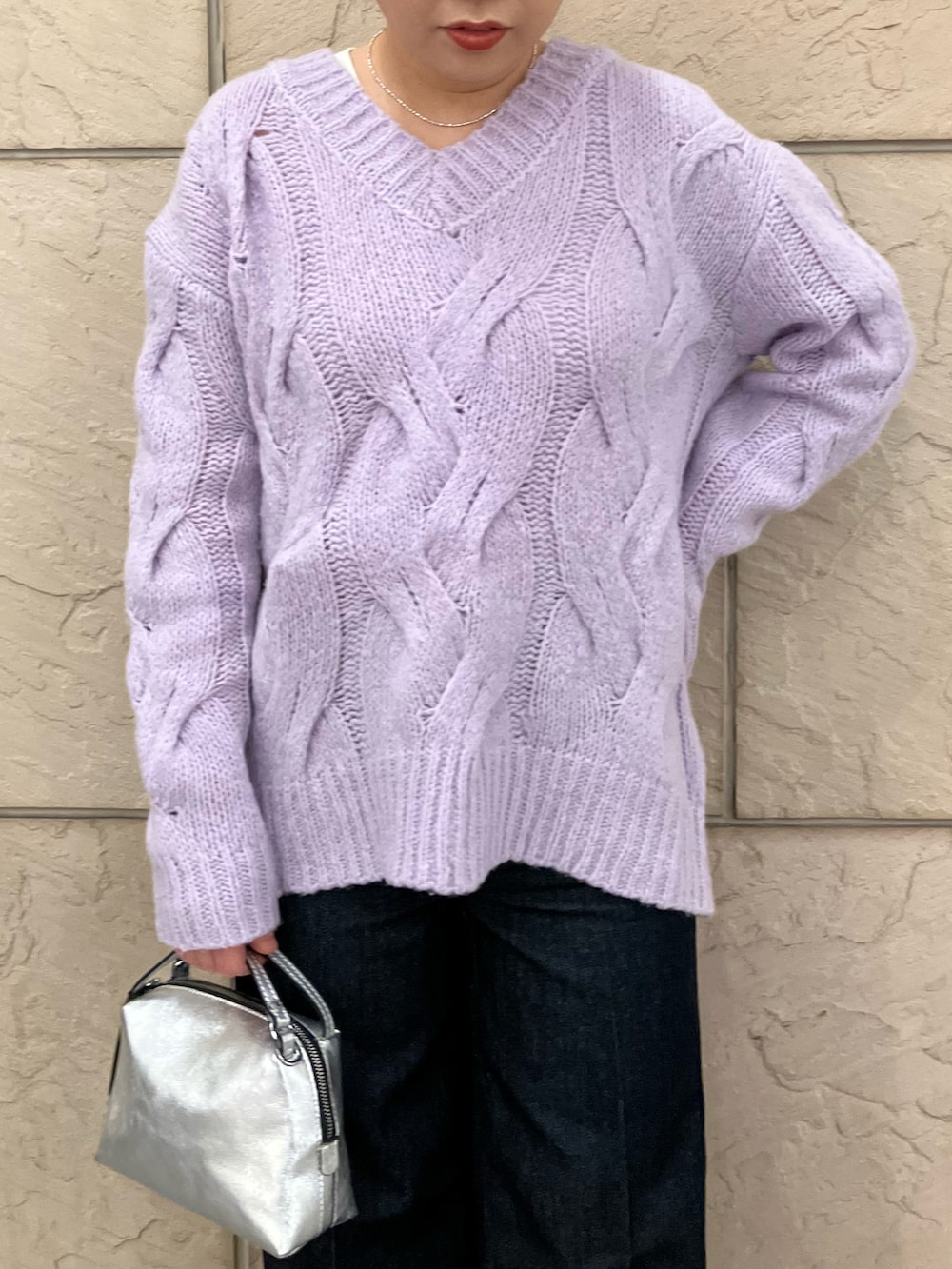 ROSSOウールカシミヤケーブル編オーバーニット- カラー: