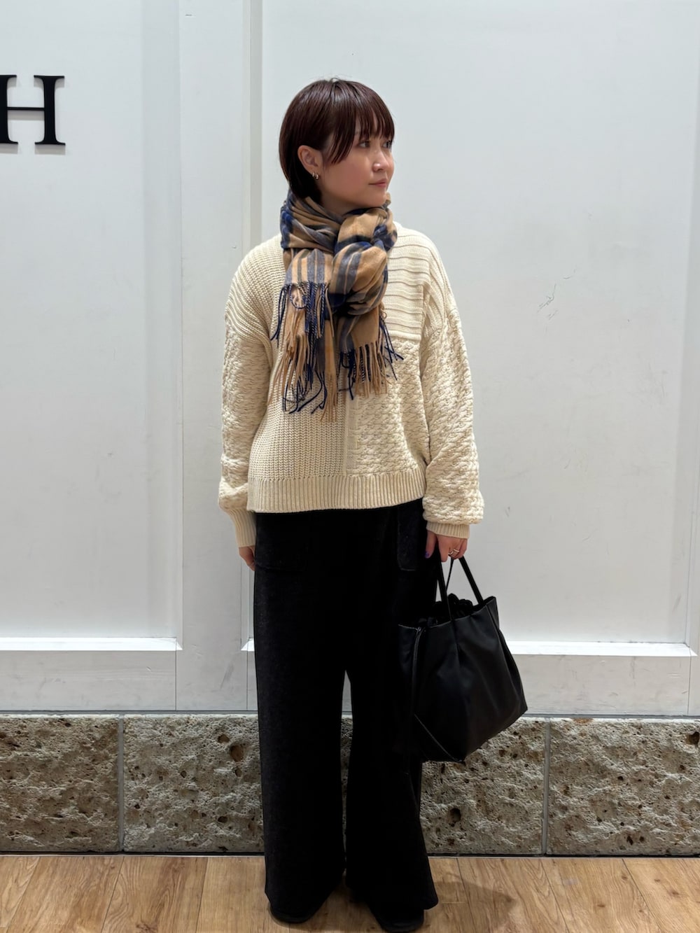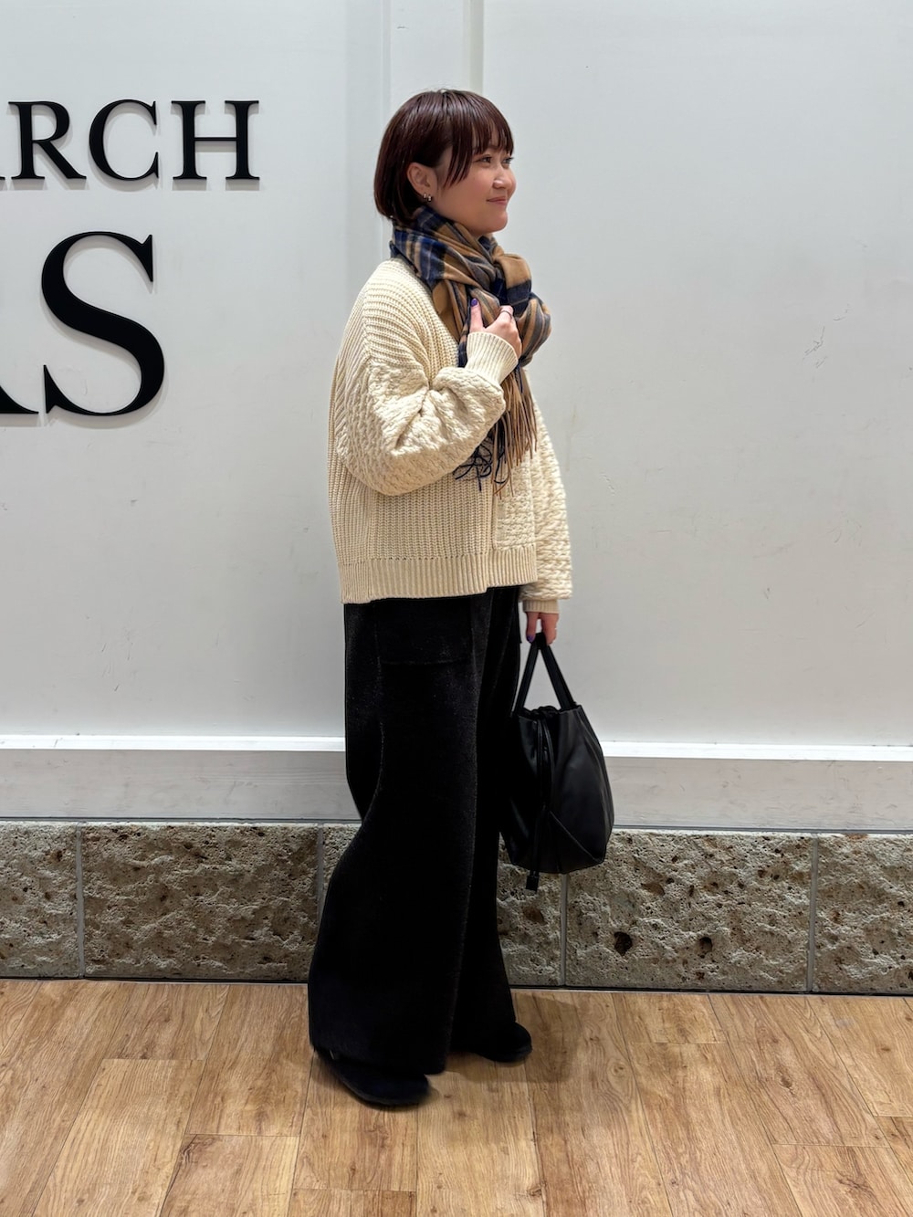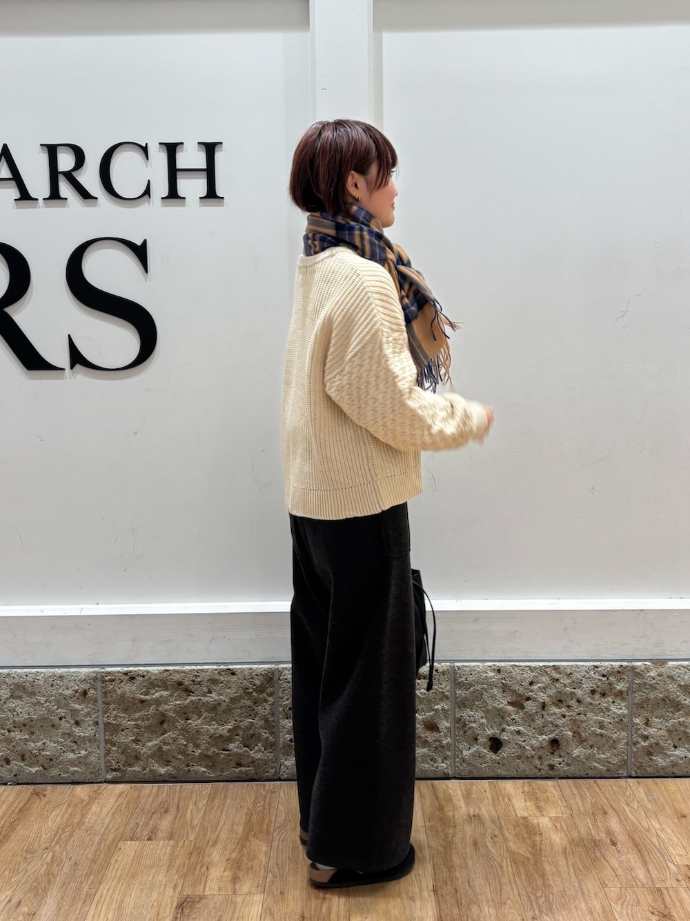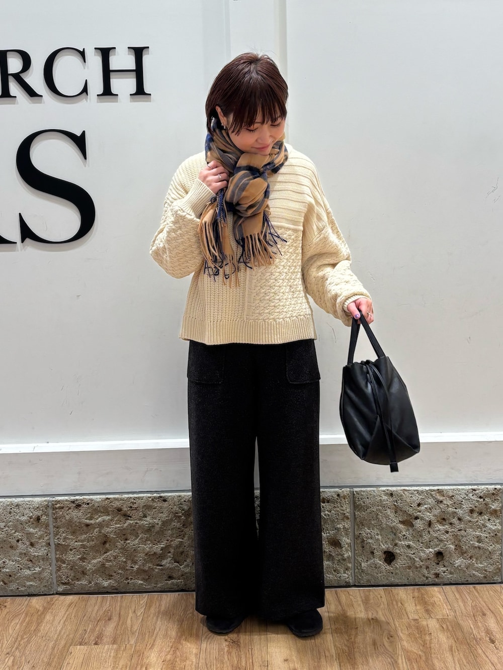 ほどよい厚みのあるニットは今からの時期にとても重宝しそうです。シンプルなお色味ですが、ケーブル柄などのデザインがコーディネートのアクセントになるのがいいですね。