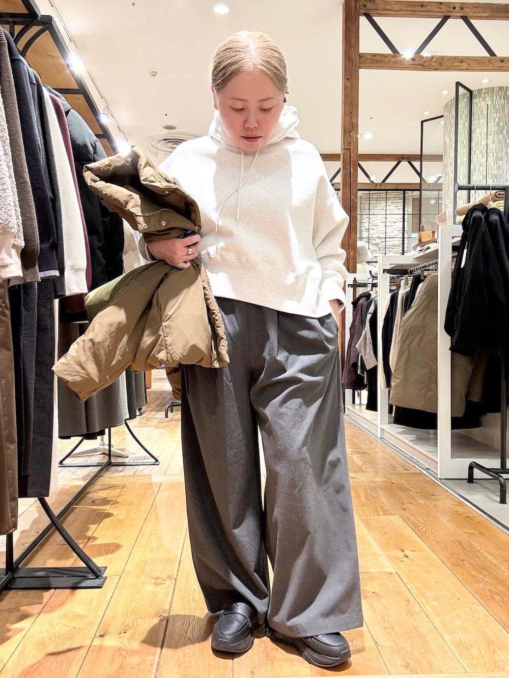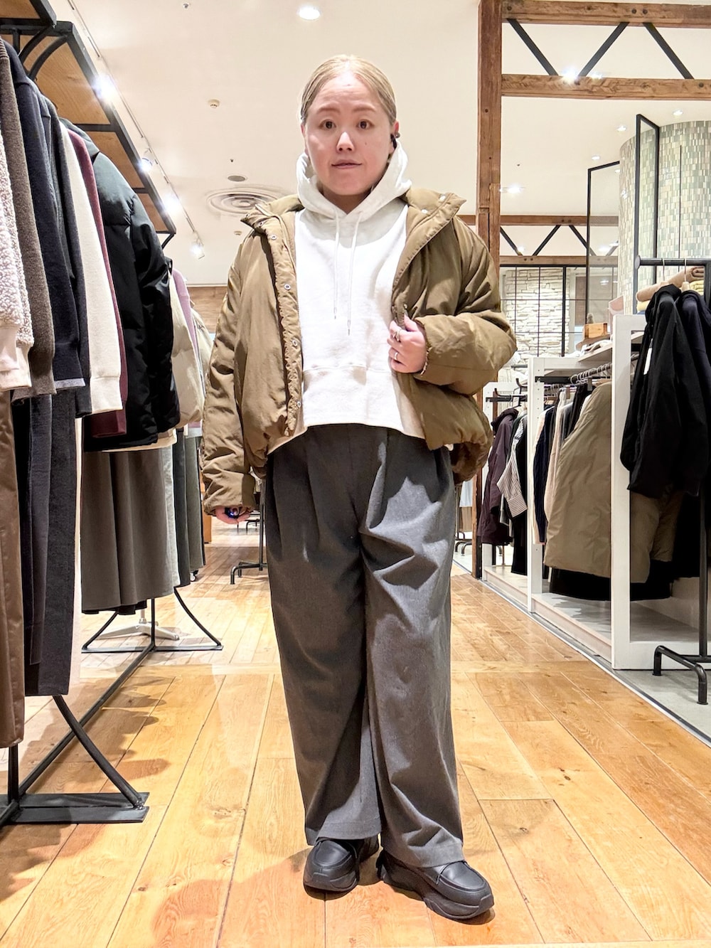 アウターにも短めのダウンを合わせて